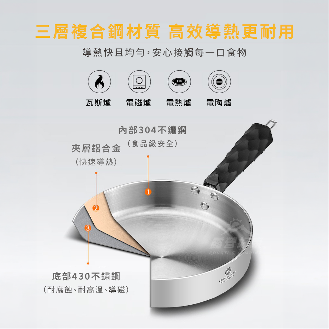 ✔三層複合鋼材質,高效導熱更耐用,安心接觸每一口食物