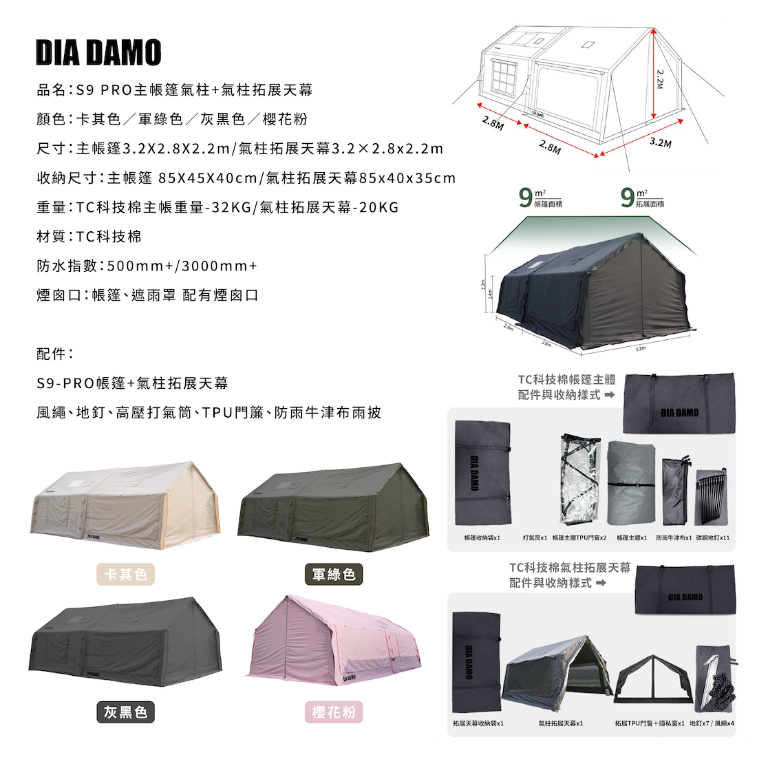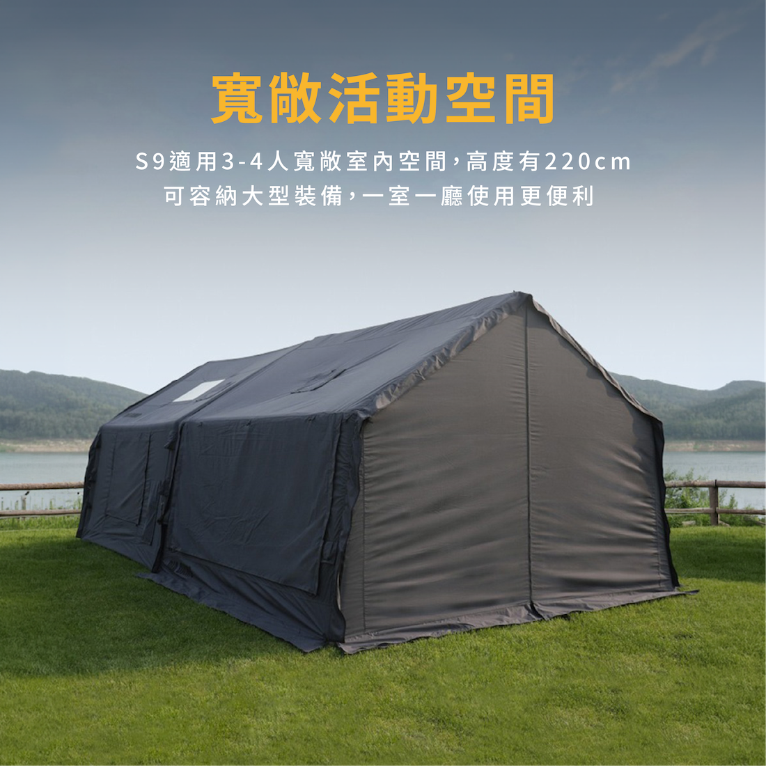 ✔寬敞活動空間:S9 PRO適用3-4人寬敞室內空間,一室一廳高度有220cm可容納大型裝備