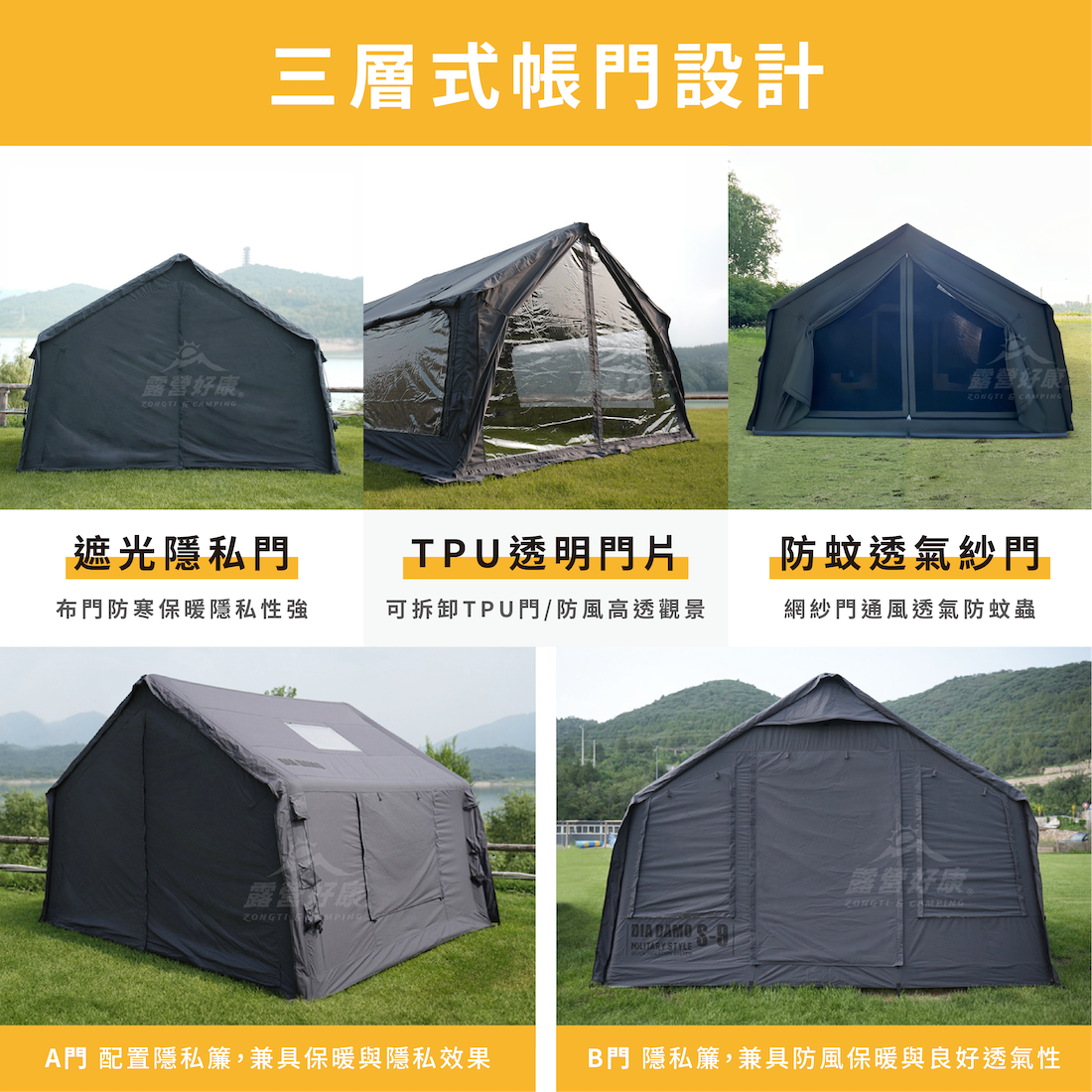 ✔三層門簾設計:遮光隱私門/TPU透明門片/防蚊透氣紗門