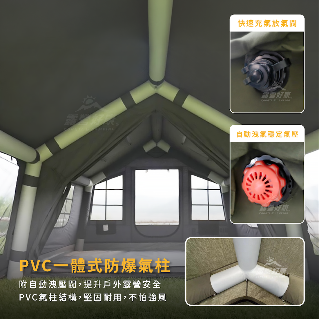 ✔PVC一體式防爆氣柱:附自動洩壓閥,PVC氣柱結構,堅固耐用,不怕強風