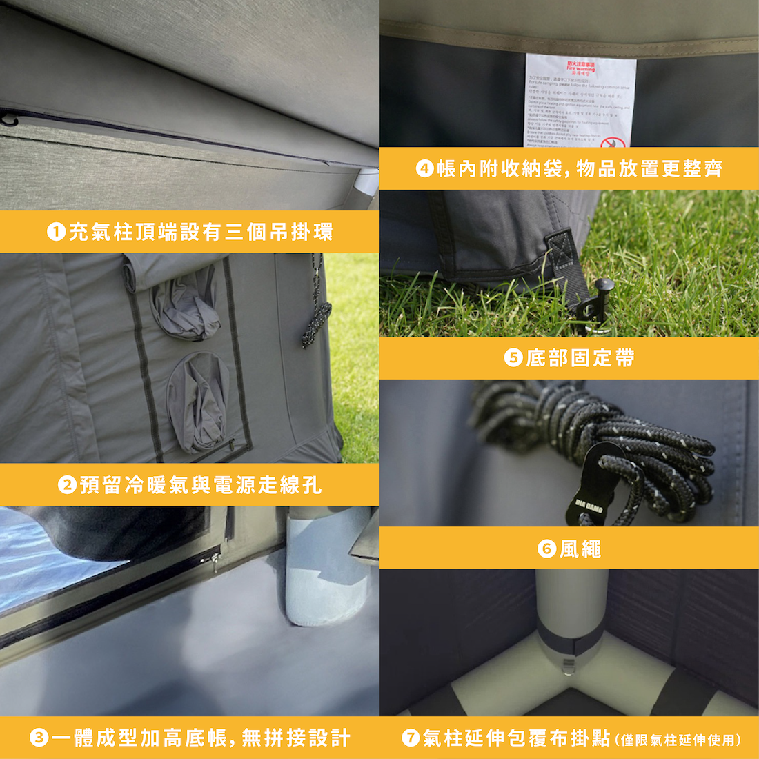 ✔帳篷可無限連接:氣柱拓展天幕兩邊可以與主帳無限擴充連接