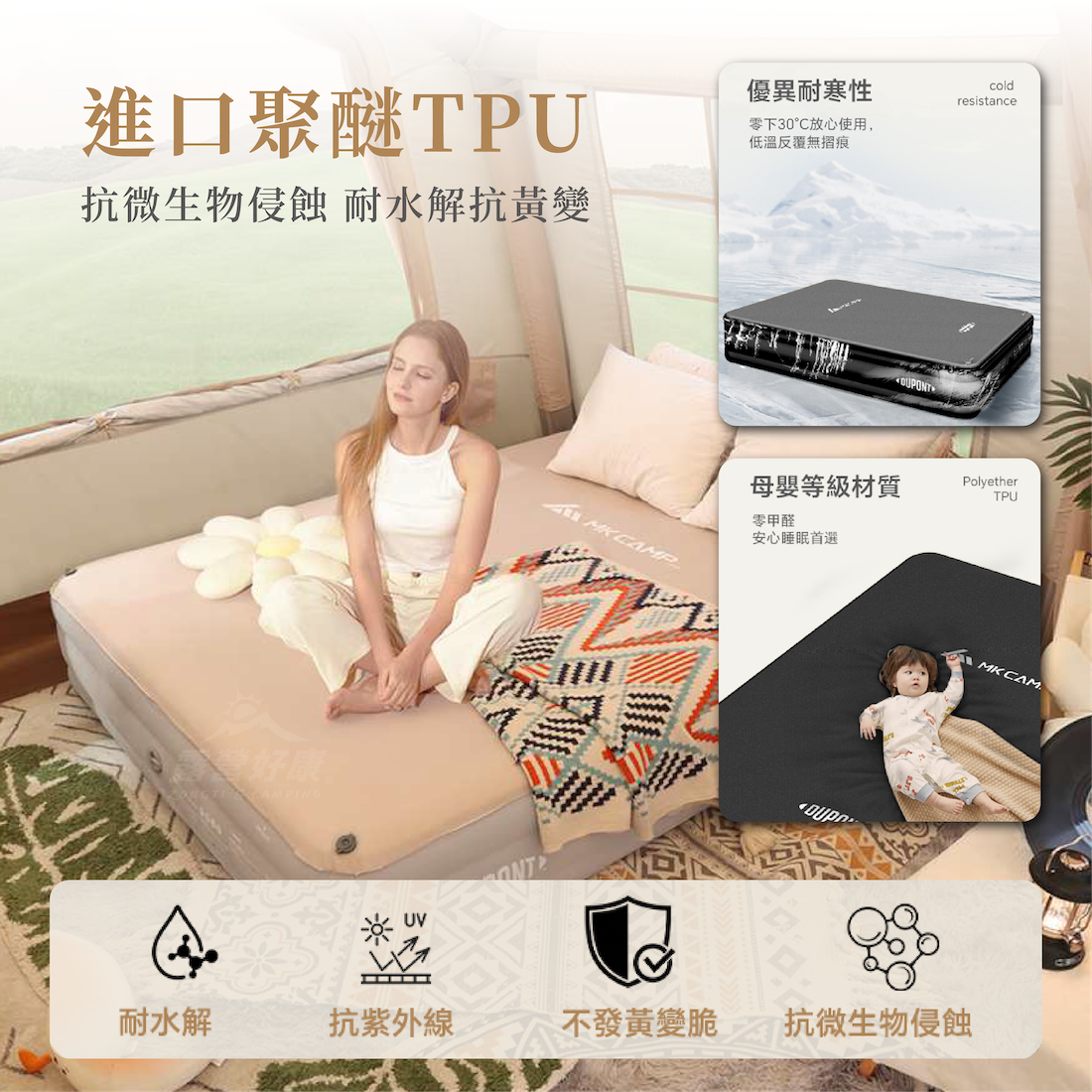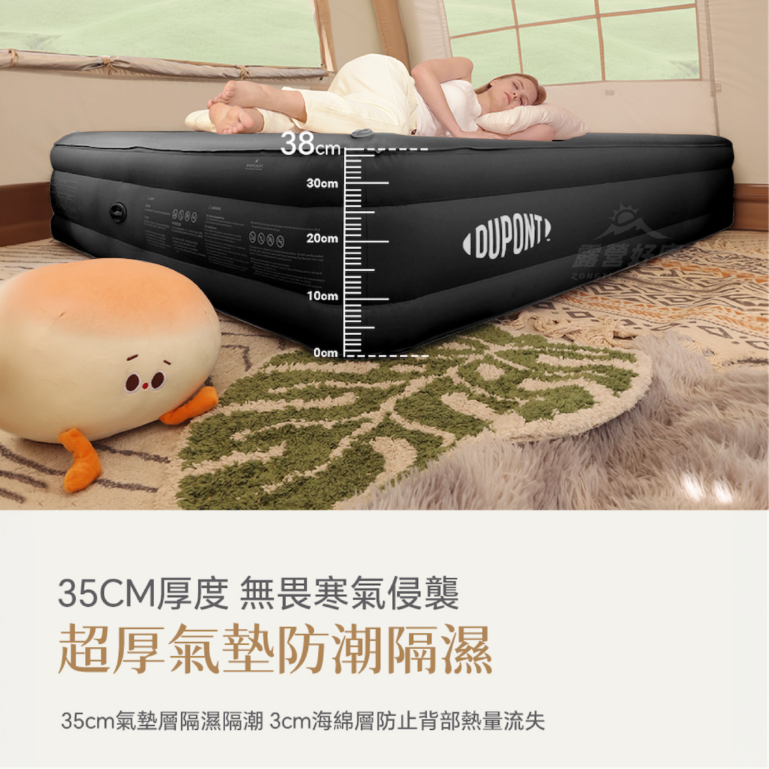 ✔35cm超厚氣墊防潮防濕,3cm海棉層防止背部熱量流失