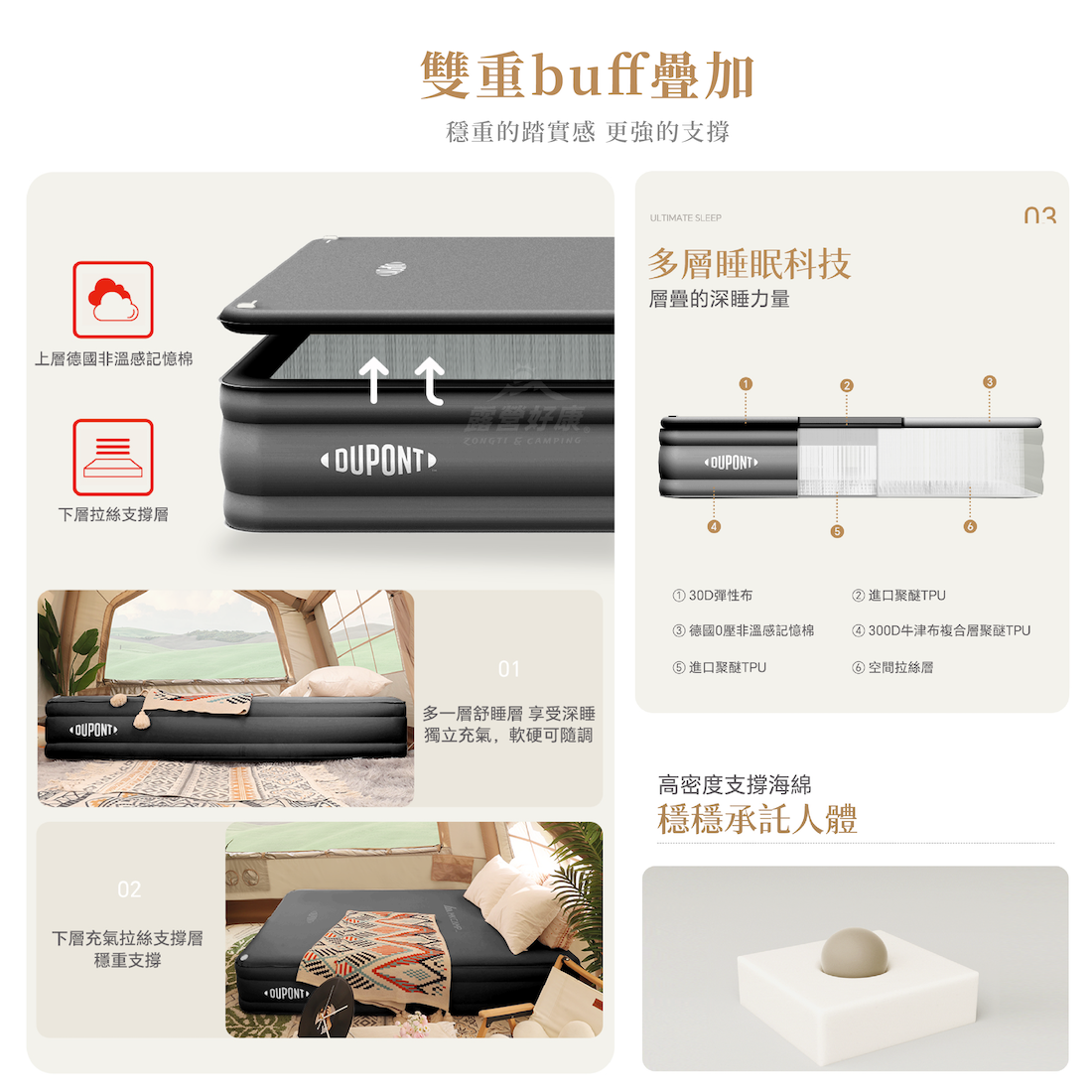 ✔海綿充氣雙層結構,多一層0壓深睡層