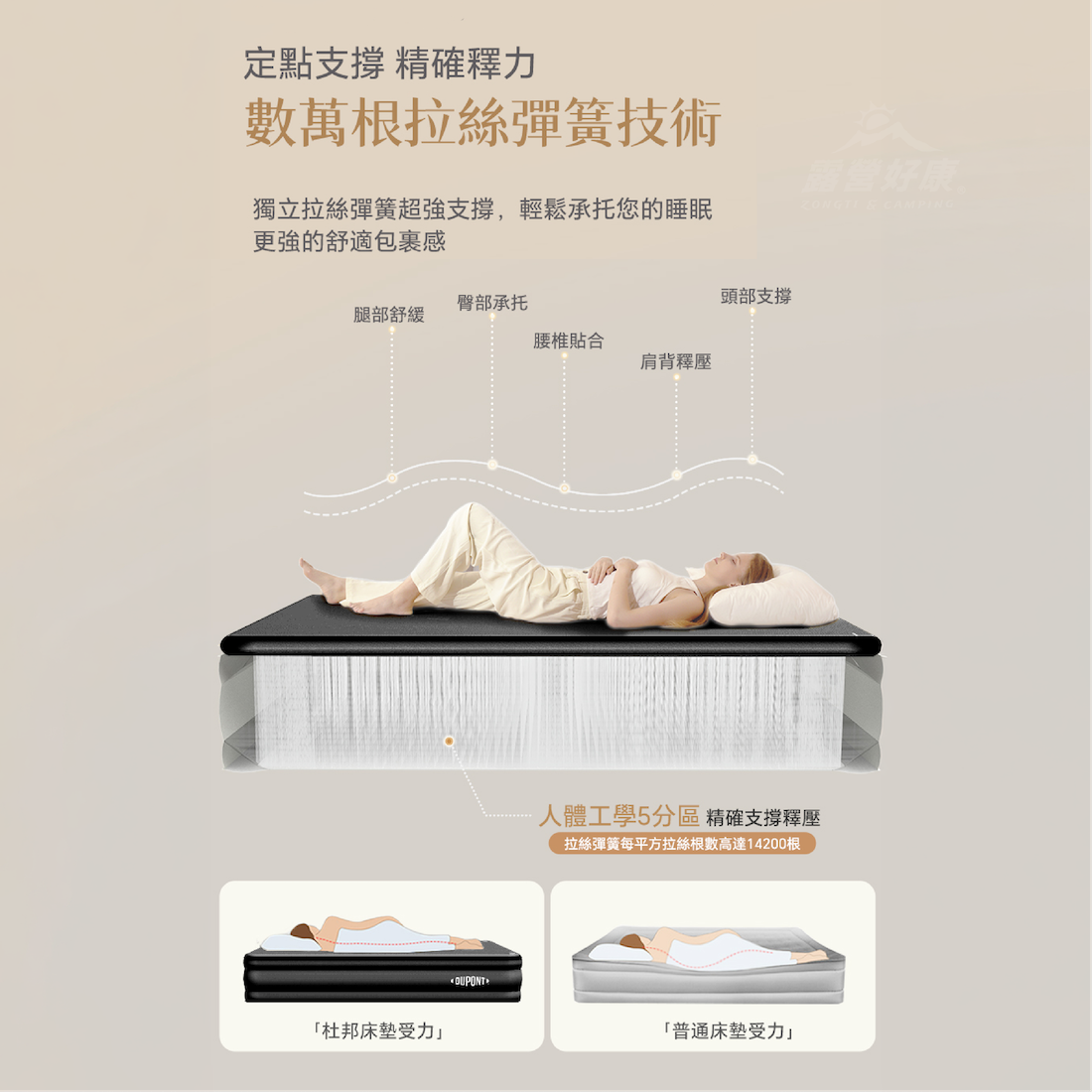 ✔數萬根拉絲彈簧技術,定點支撐,精確釋力