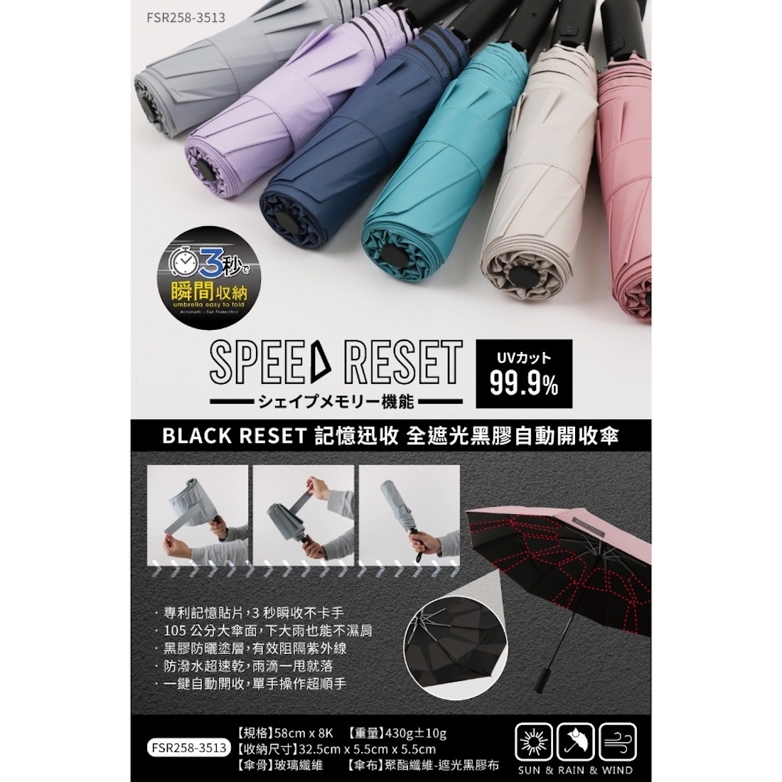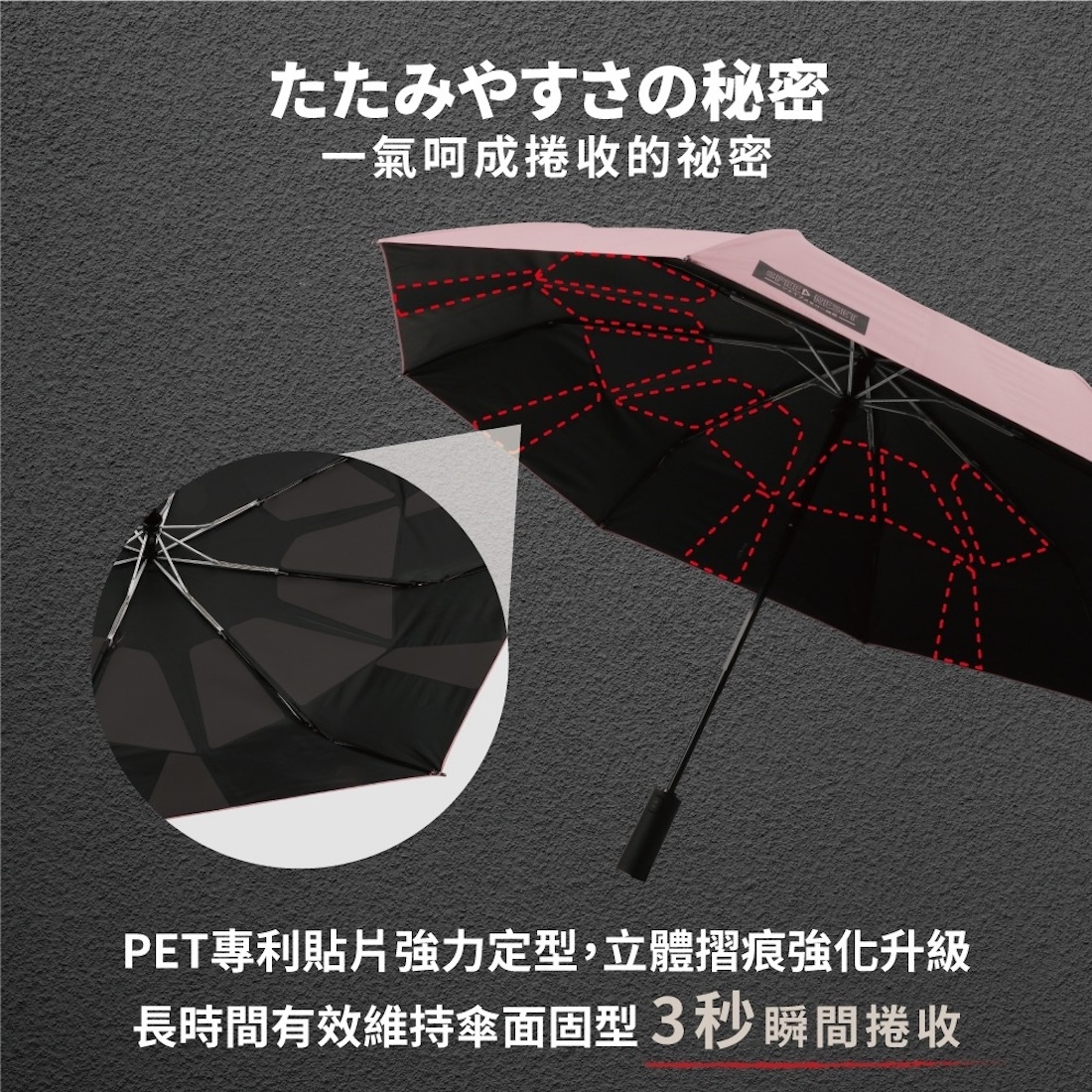 ✔專利記憶貼片|收傘不卡手,3秒瞬收超順手