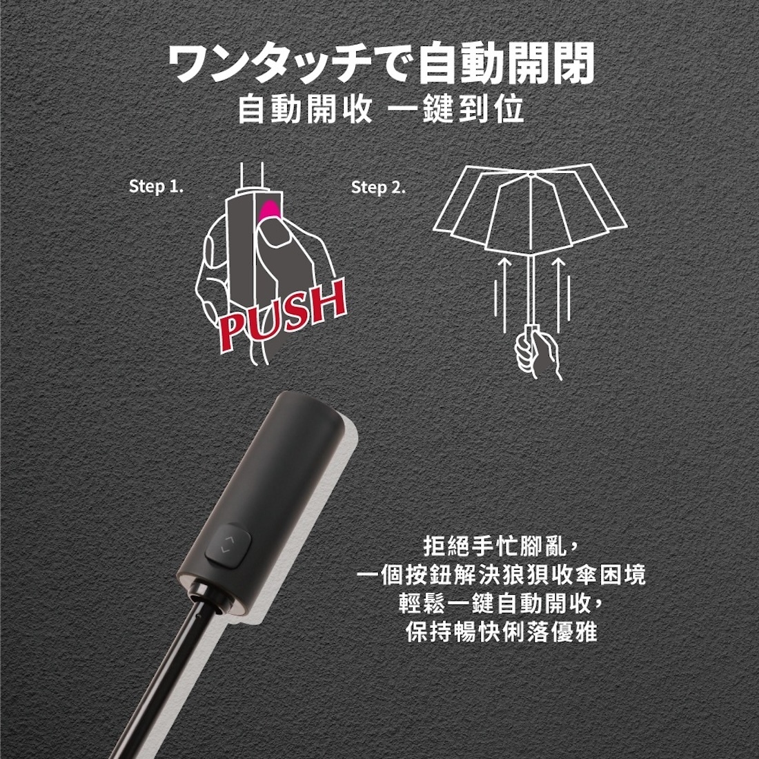 ✔一鍵自動開收|單手操作好輕鬆,通勤族神救援