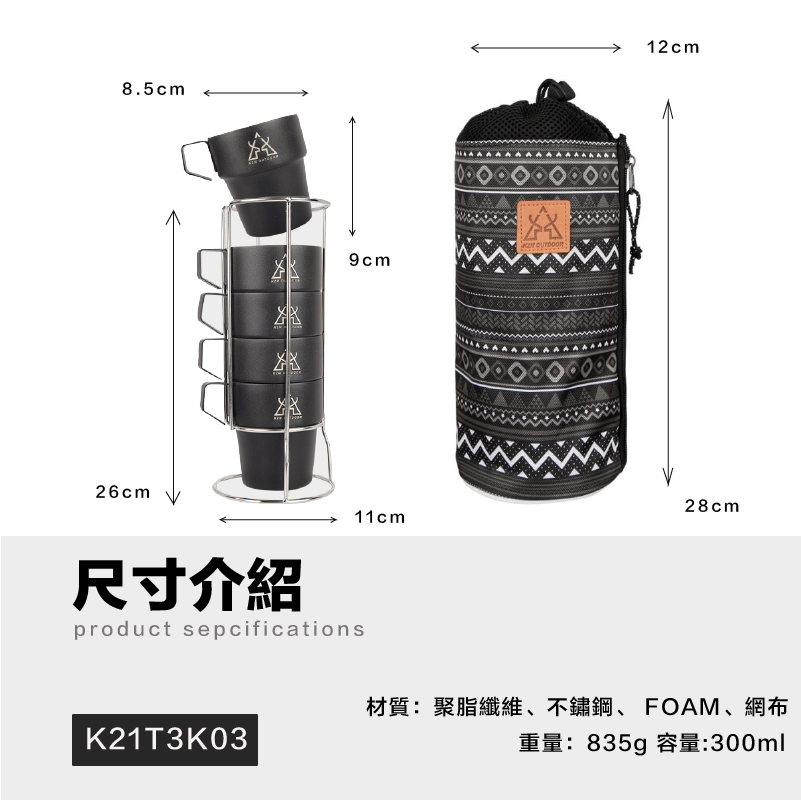 尺寸:14x11x28cm / 杯子 8.5x6x9cm / 杯架 11x26cm