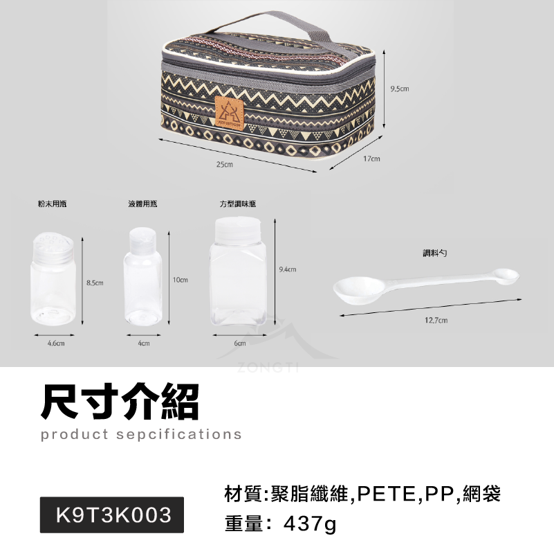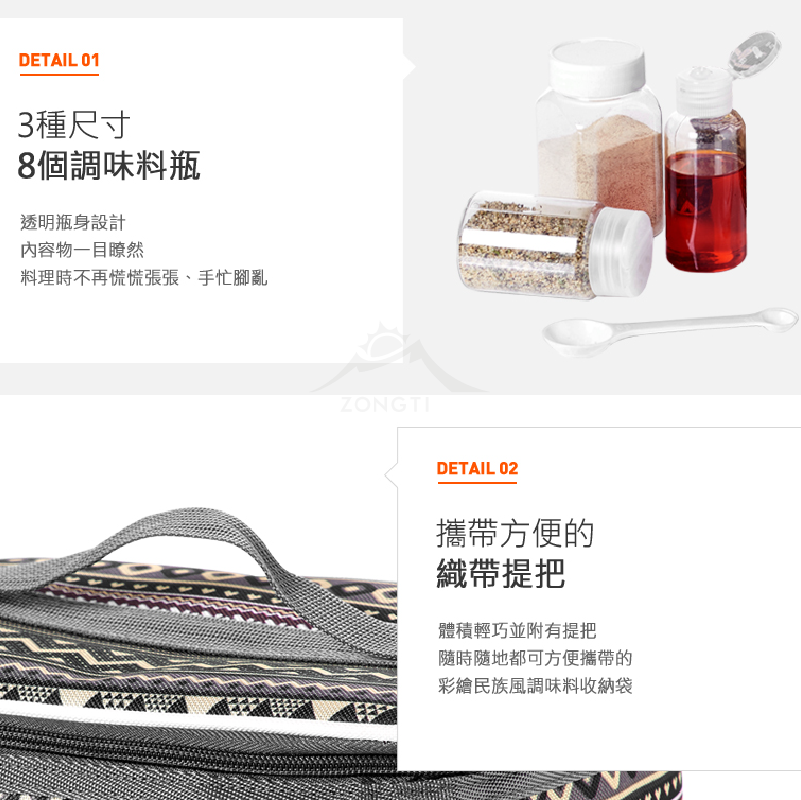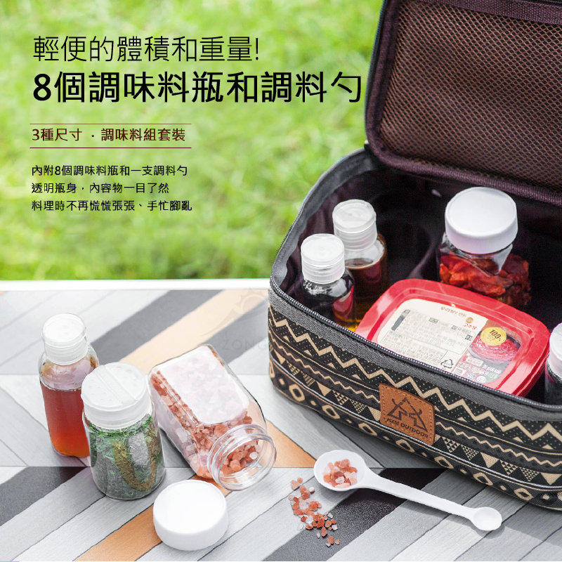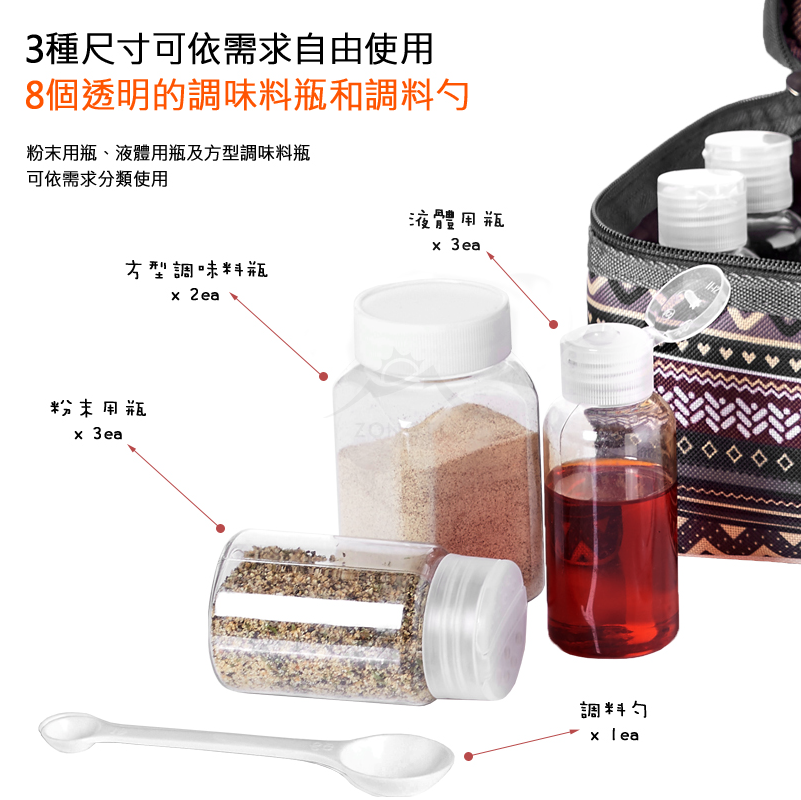 ✔內附3種尺寸調味罐(共8個瓶子+1個調味勺)