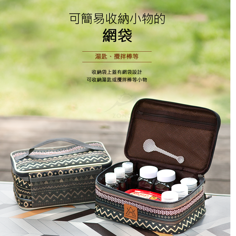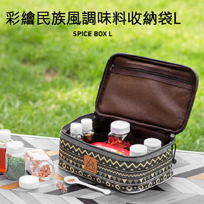 【KZM】 彩繪民族風調味料收納袋(L)-藍灰色 K9T3K003 AC12