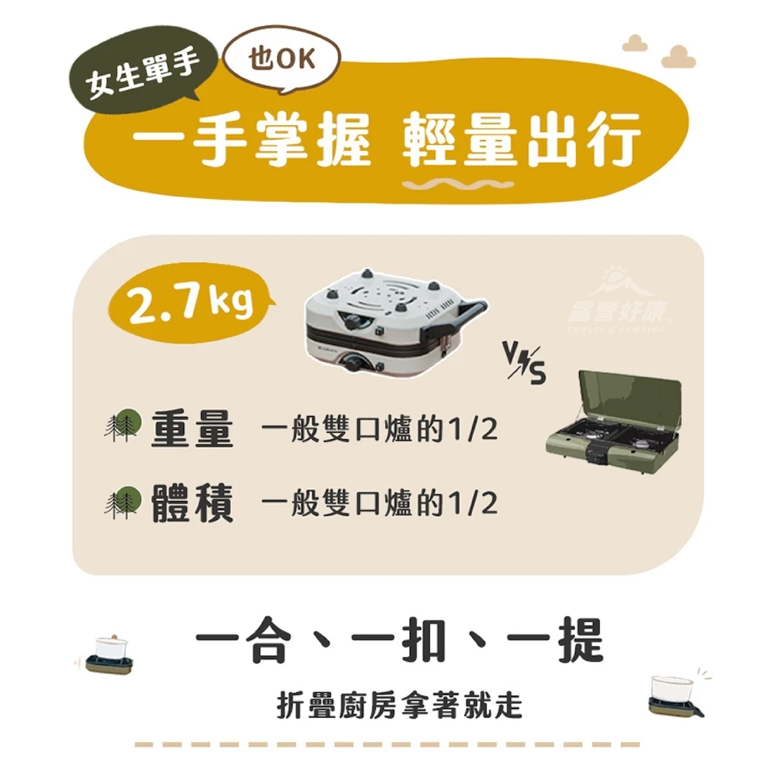 ✔雙爐折疊收納,超輕便超好攜帶
