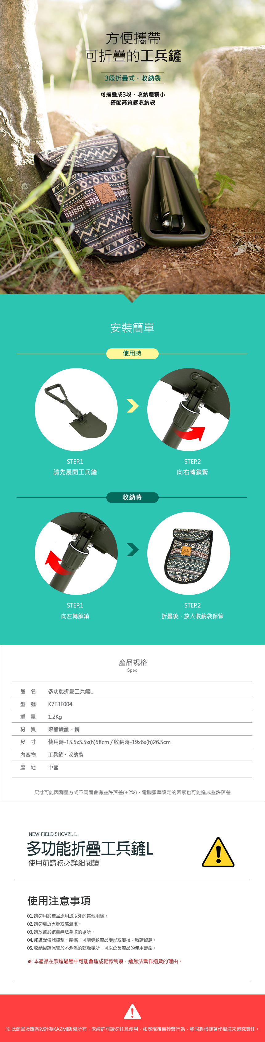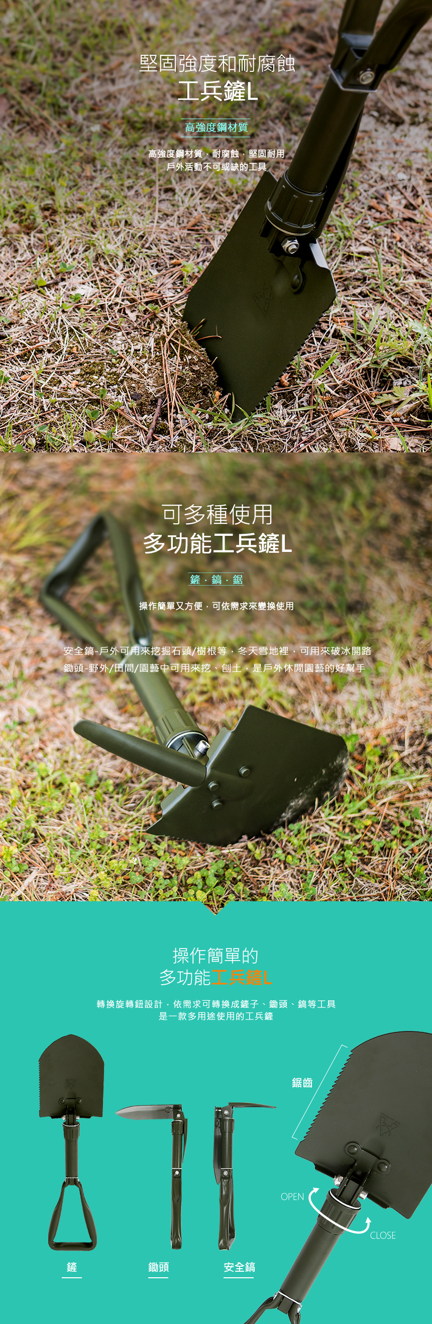 🔥具備多種功能,可依需求轉換成鏟子、鋤頭、安全鎬等工具
