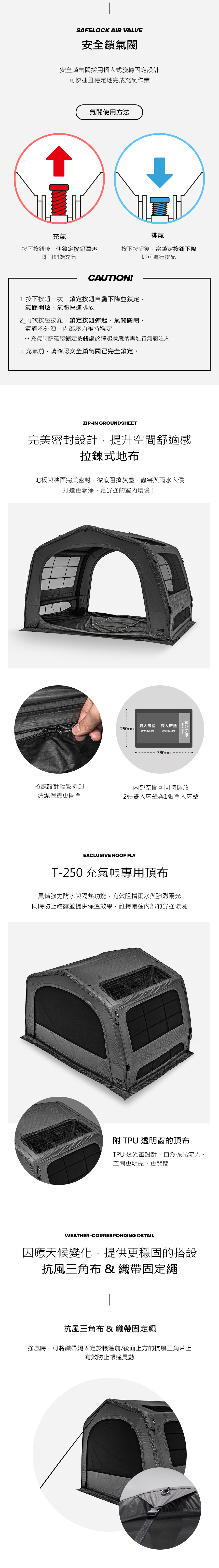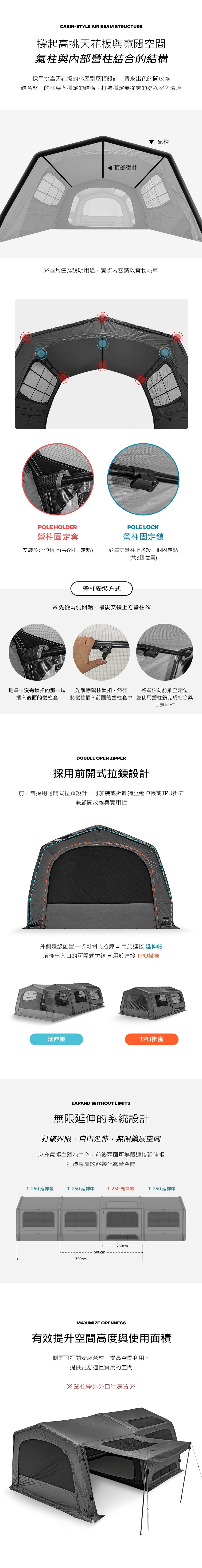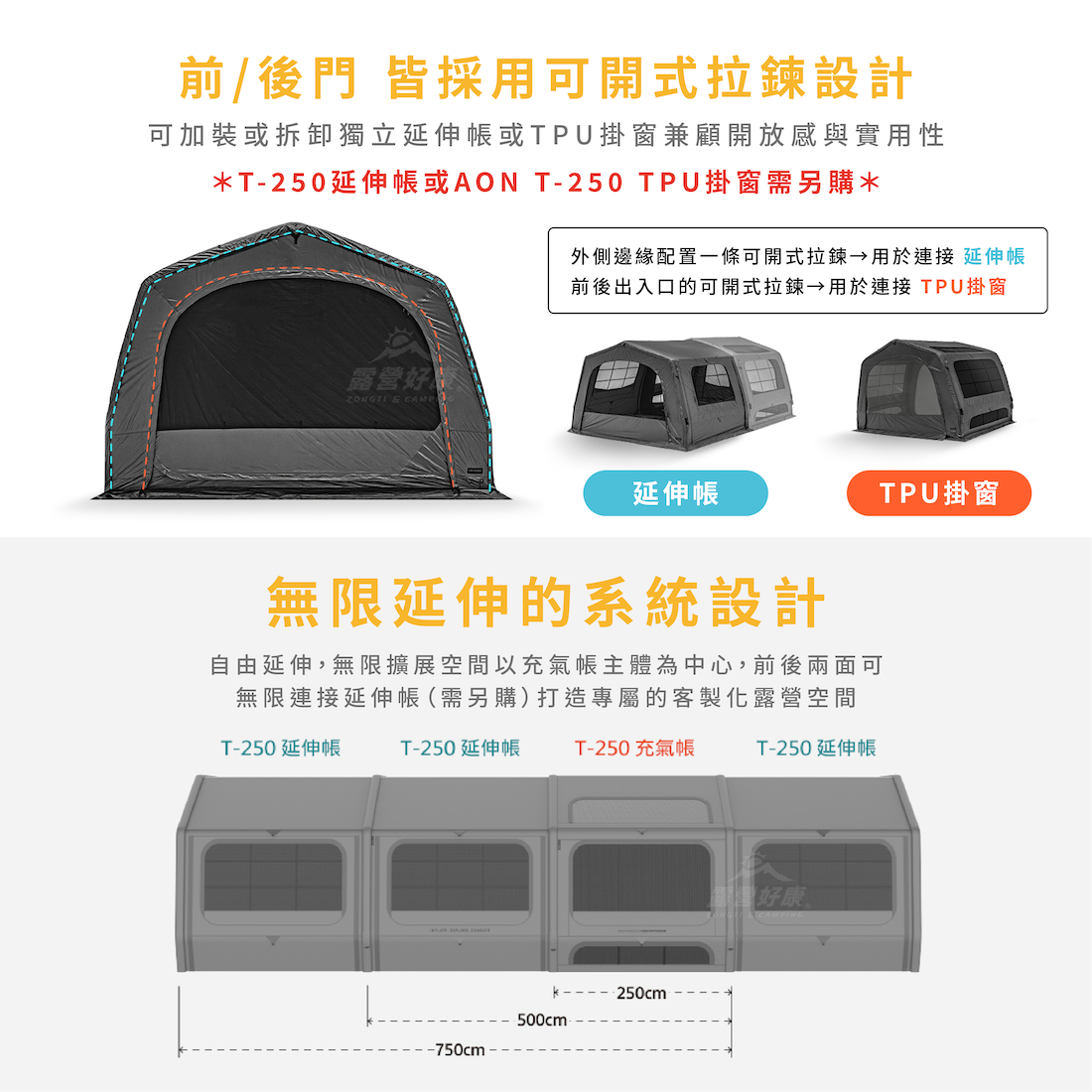 ✔T-250充氣帳前後門可無限連接延伸帳(需另購)打造專屬的露營空間
