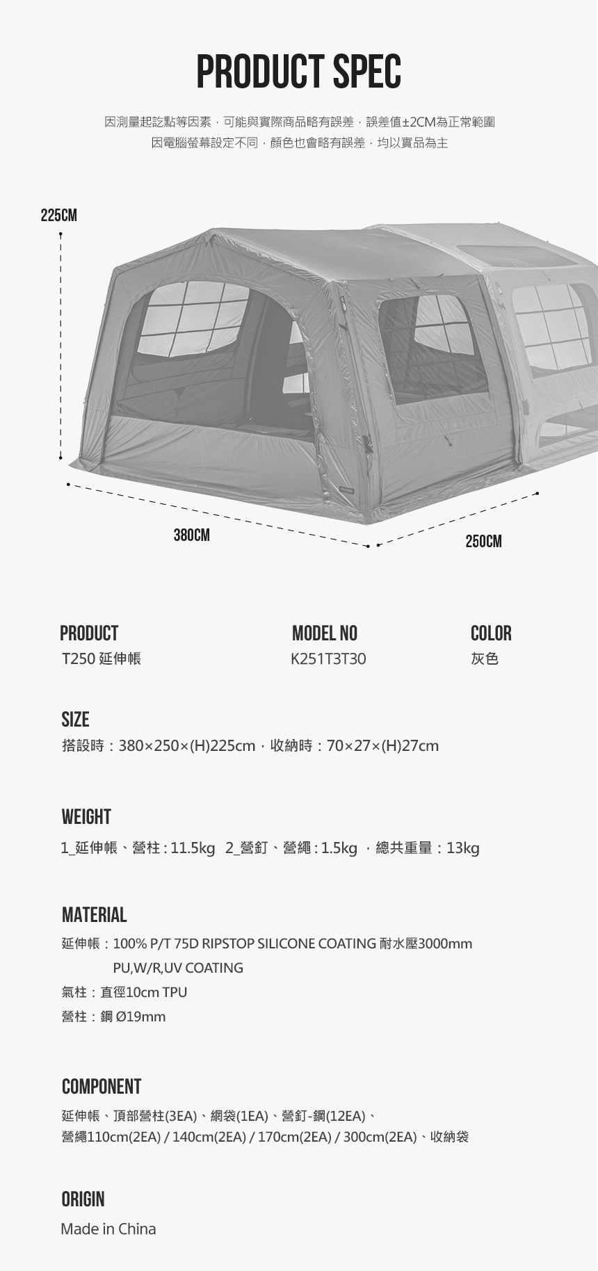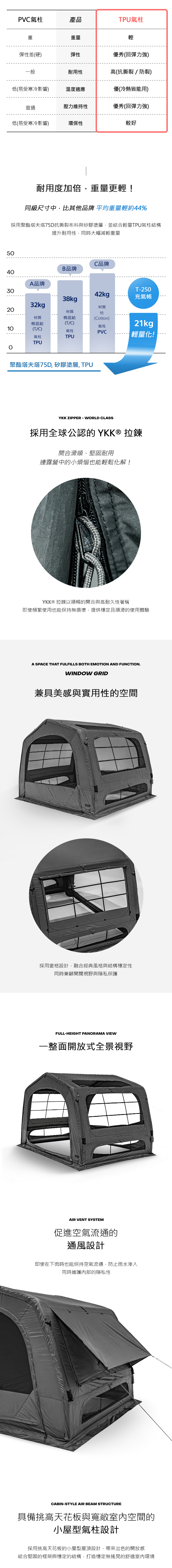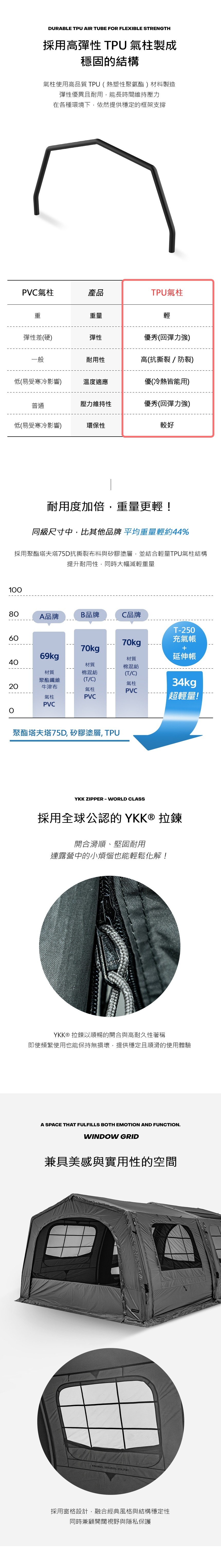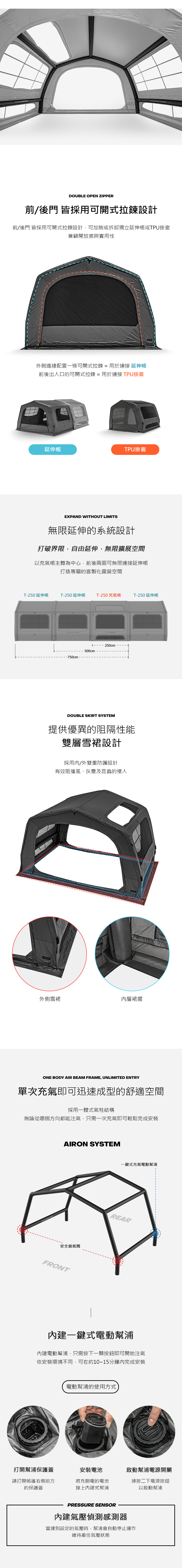 ✔T-250充氣帳前後門可無限連接延伸帳(需另購)打造專屬的露營空間