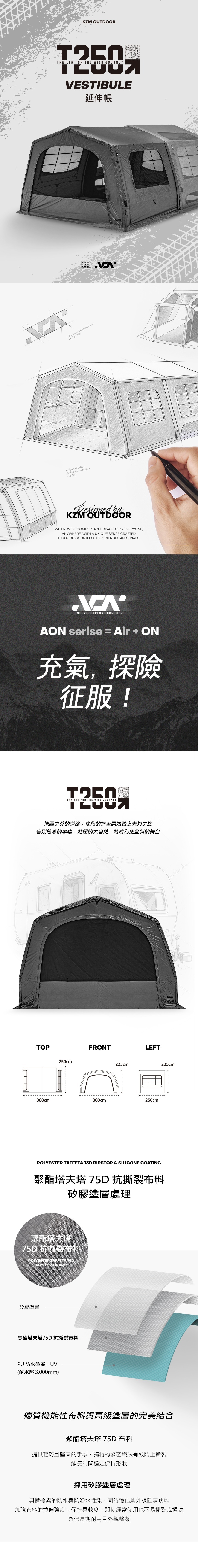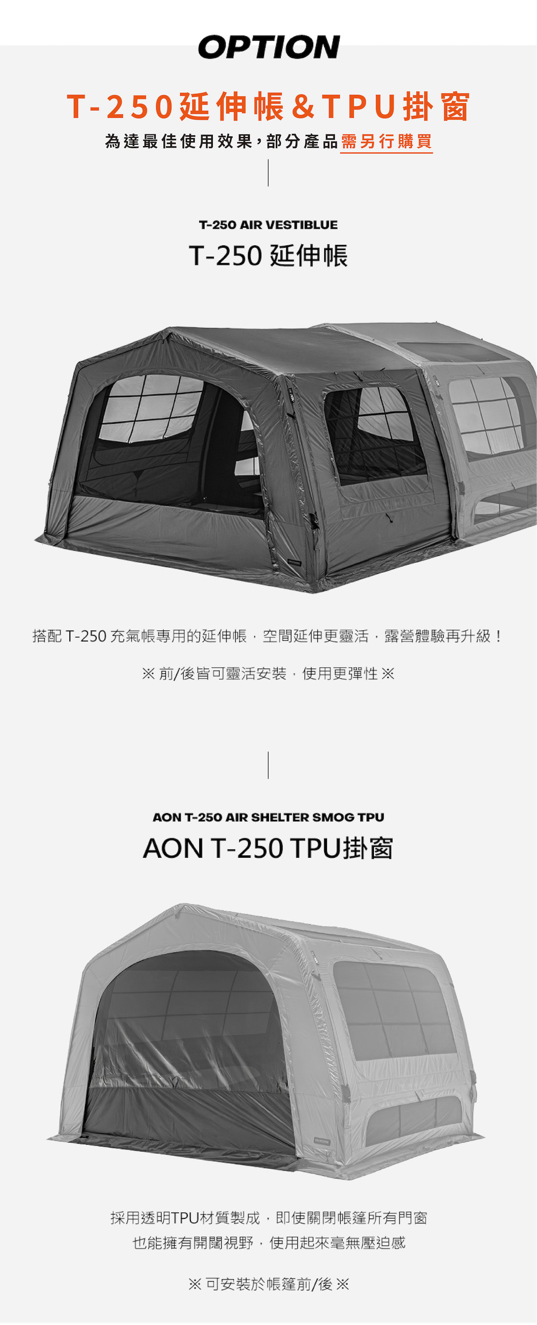 *注意:T-250延伸帳或AON T-250 TPU掛窗需另購*