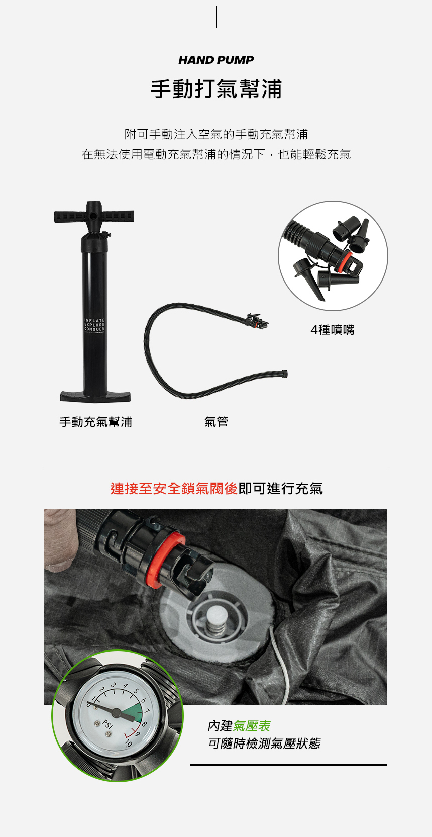 ✔附手動充氣幫浦,在無法使用電動充氣幫浦的情況下,也能輕鬆充氣