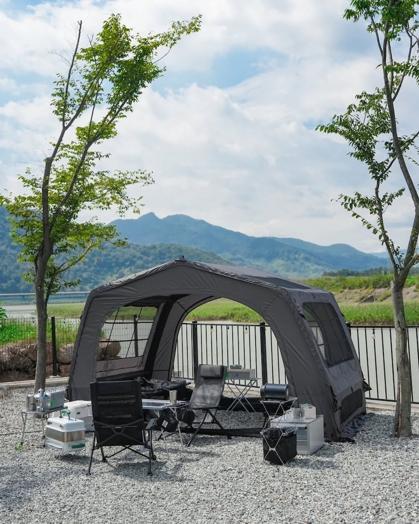 ✔充氣帳側面可全展開需安裝營柱(需另購),提高空間利用率