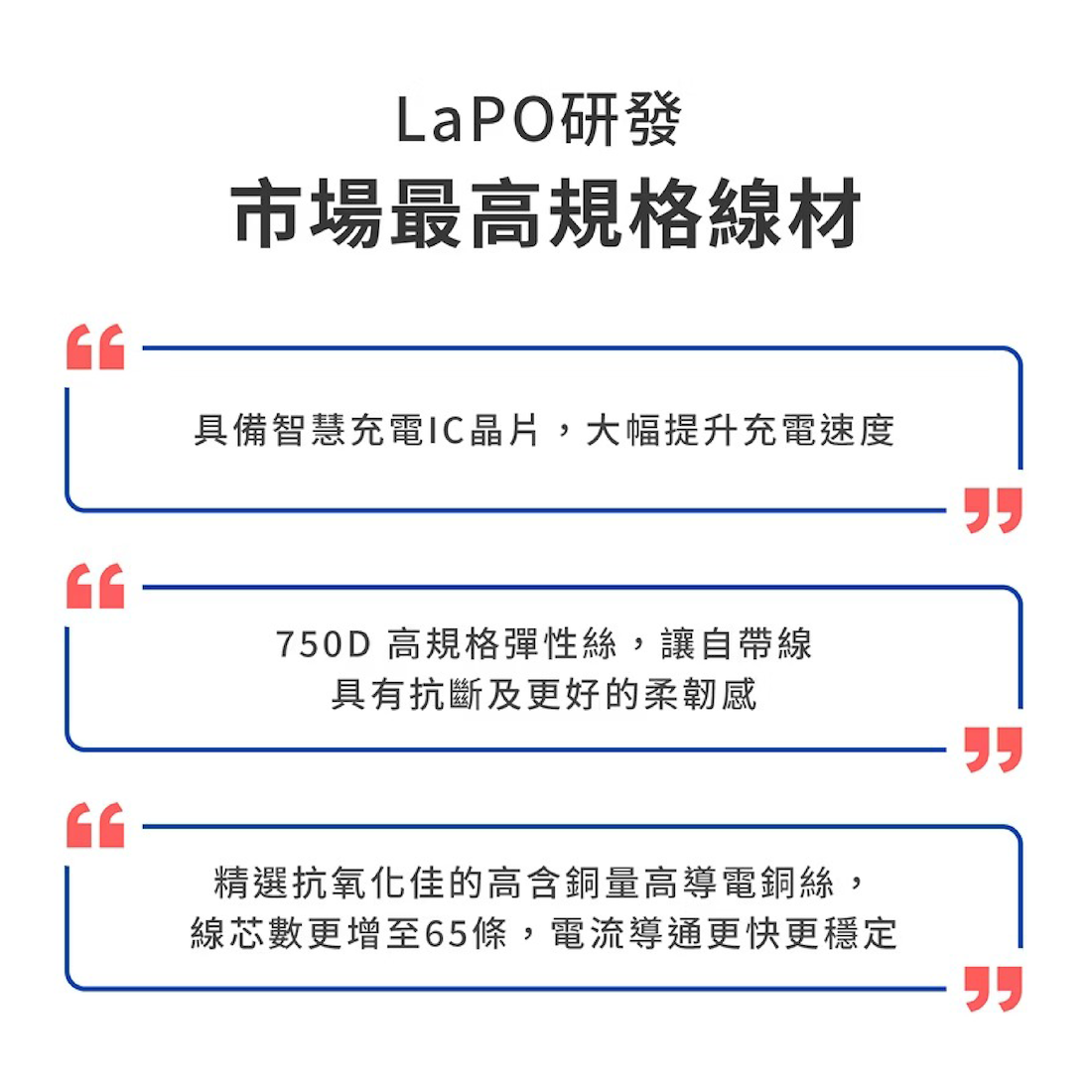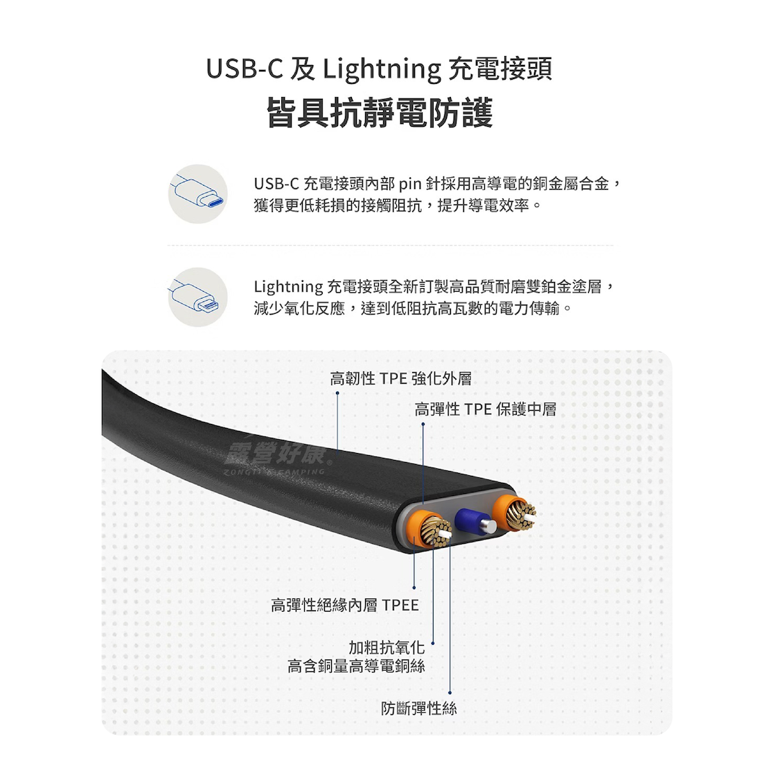 ・自帶線通過SGS 10萬次彎折/搖擺測試