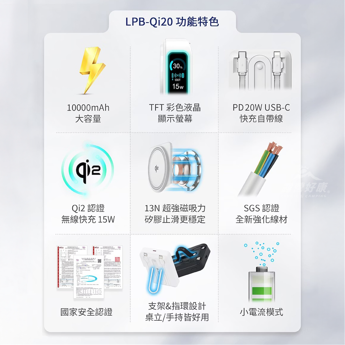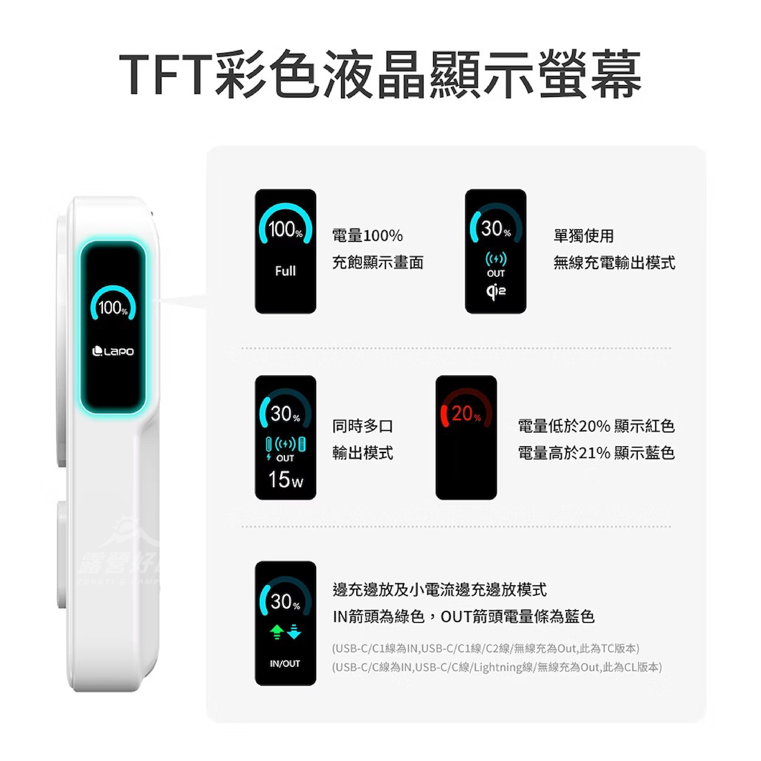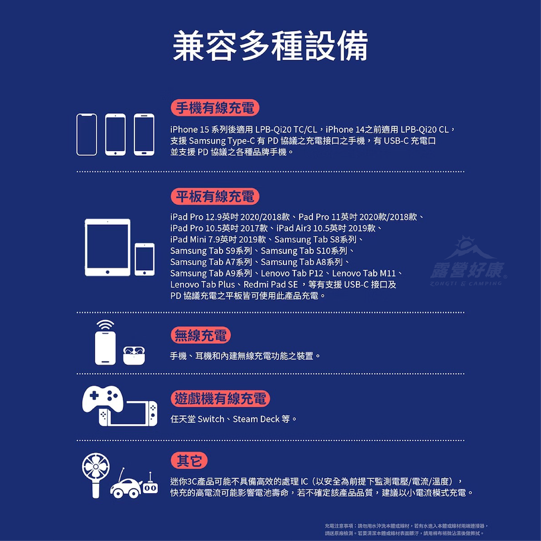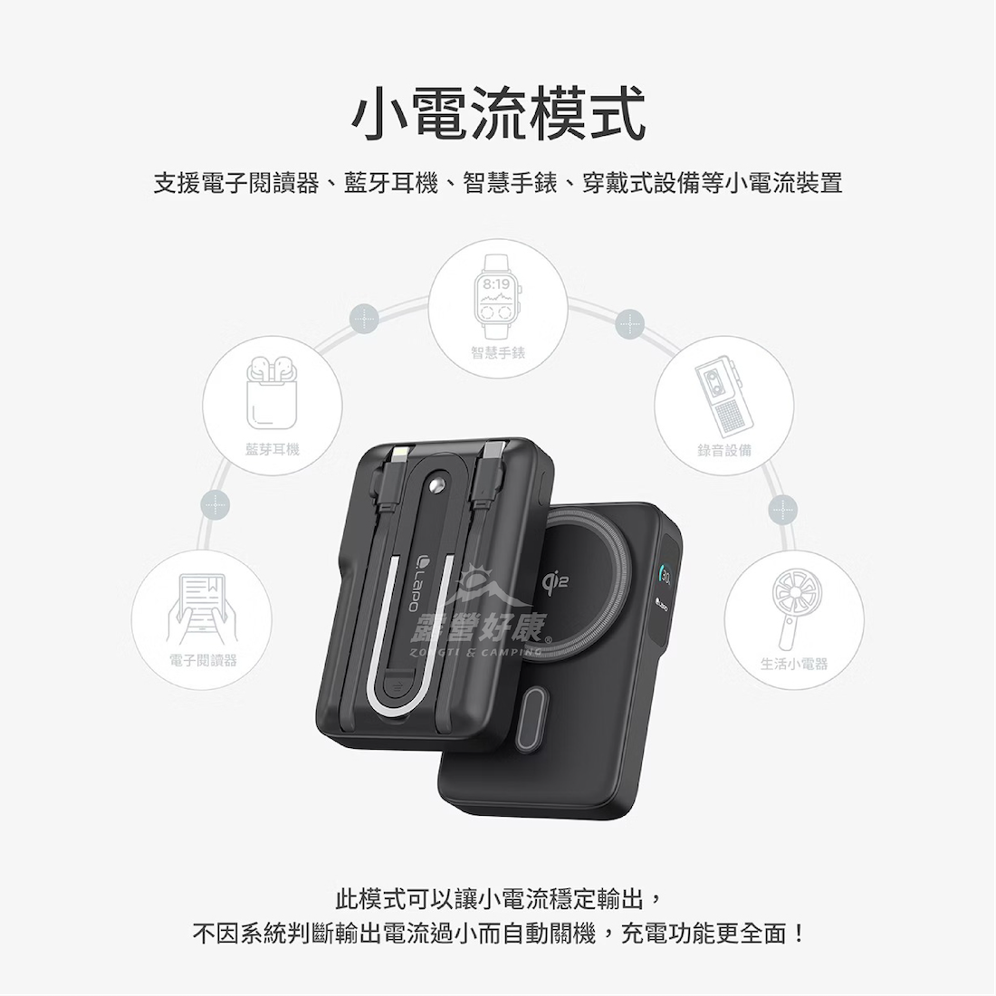 ・具備小電流模式,支援藍牙耳機、穿戴裝置、電子書