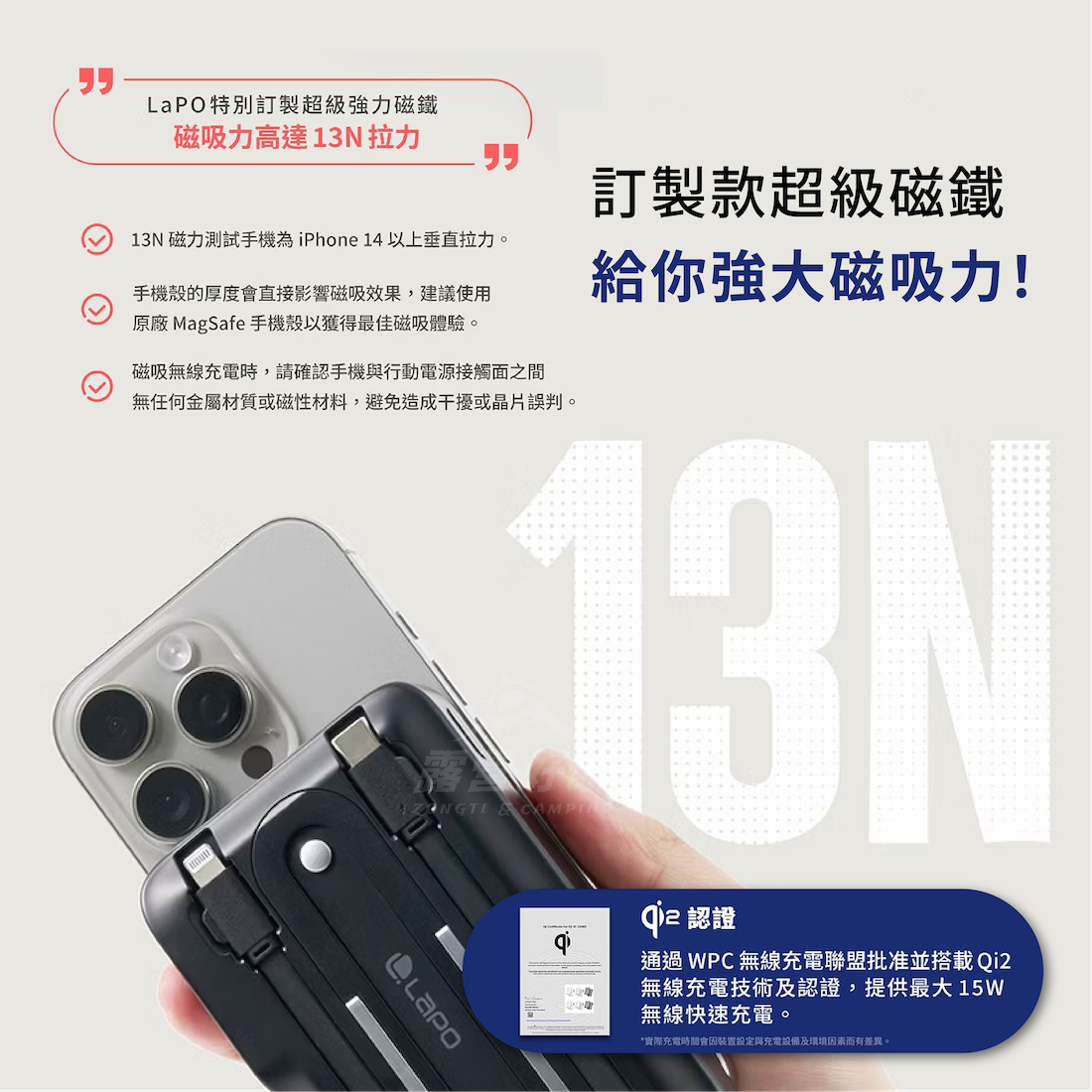 ・通過WPC無線充電聯盟Qi2測試標準認證,最高15W無線快速充電