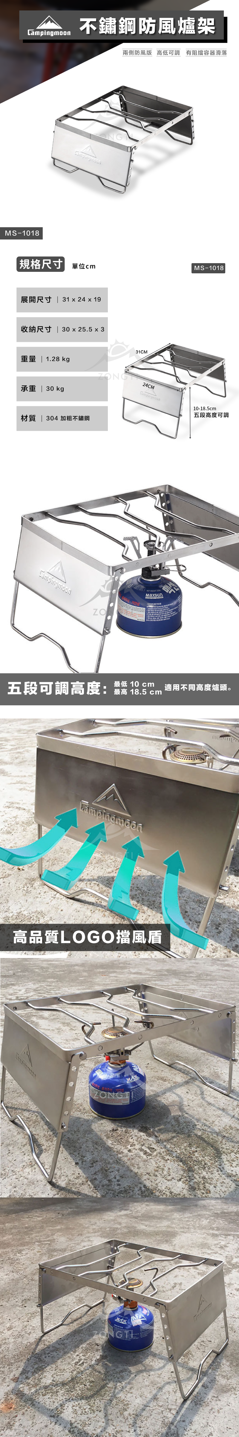 【Campingmoon柯曼】不鏽鋼擋風爐架|五段可調 高承重 MS-1018