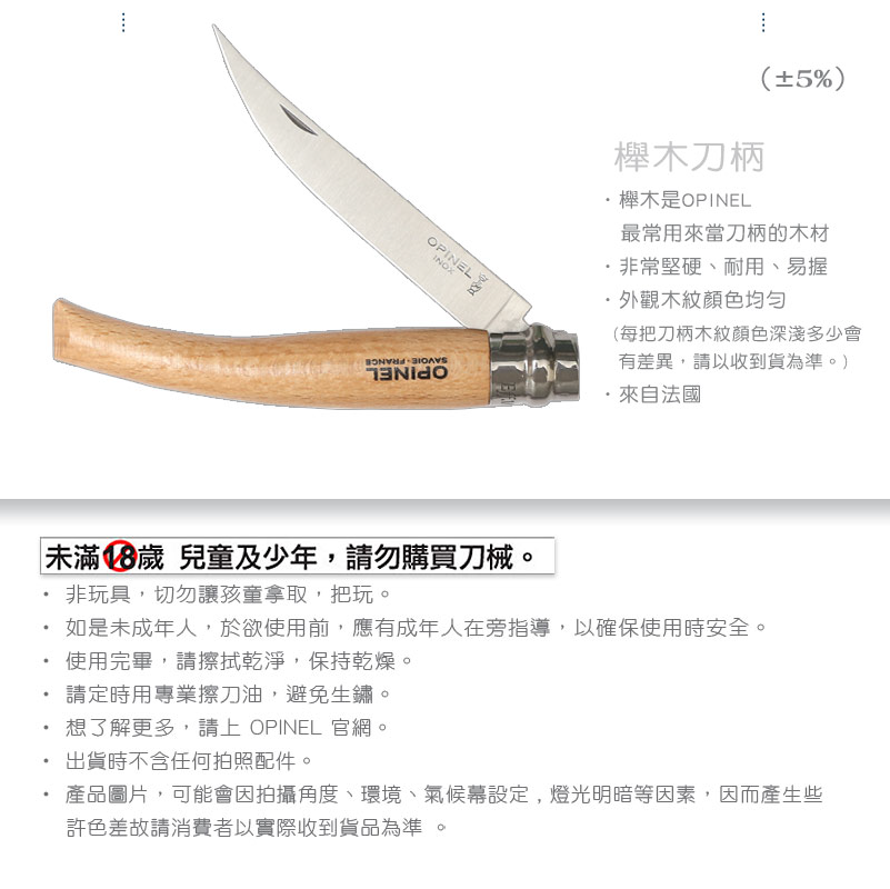 品名:OPINEL Stainless Slim knives 法國刀細長系列(No.10 #OPI_000517)