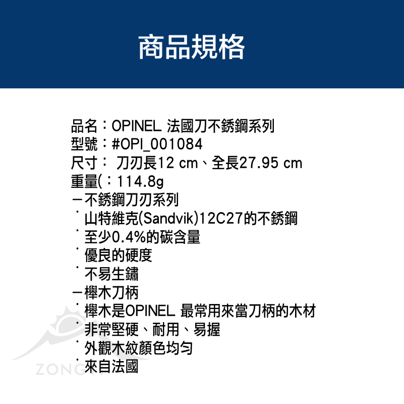品名:OPINEL Stainless steel  TRADITION 法國刀不銹鋼系列(No.12 #OPI_001084)