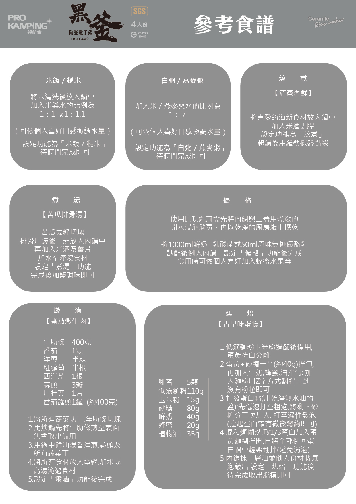 ✔白飯✔糙米飯✔白粥✔燕麥粥✔蒸煮模式(蒸海鮮)