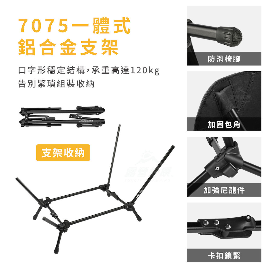 ✔7075一體式鋁合金支架,口字形穩定結構,承重高達120kg