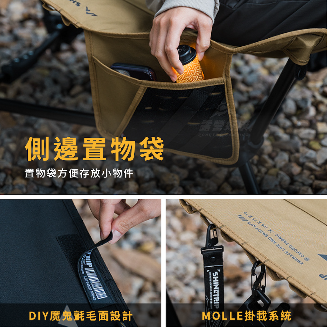 ✔側邊置物袋和MOLLE掛載系統,方便存放小物件