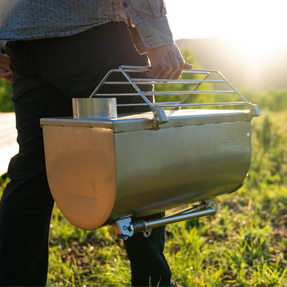 ✔爐身兩側設計了可折疊置物掛架,可在野炊時置放炊具,食材