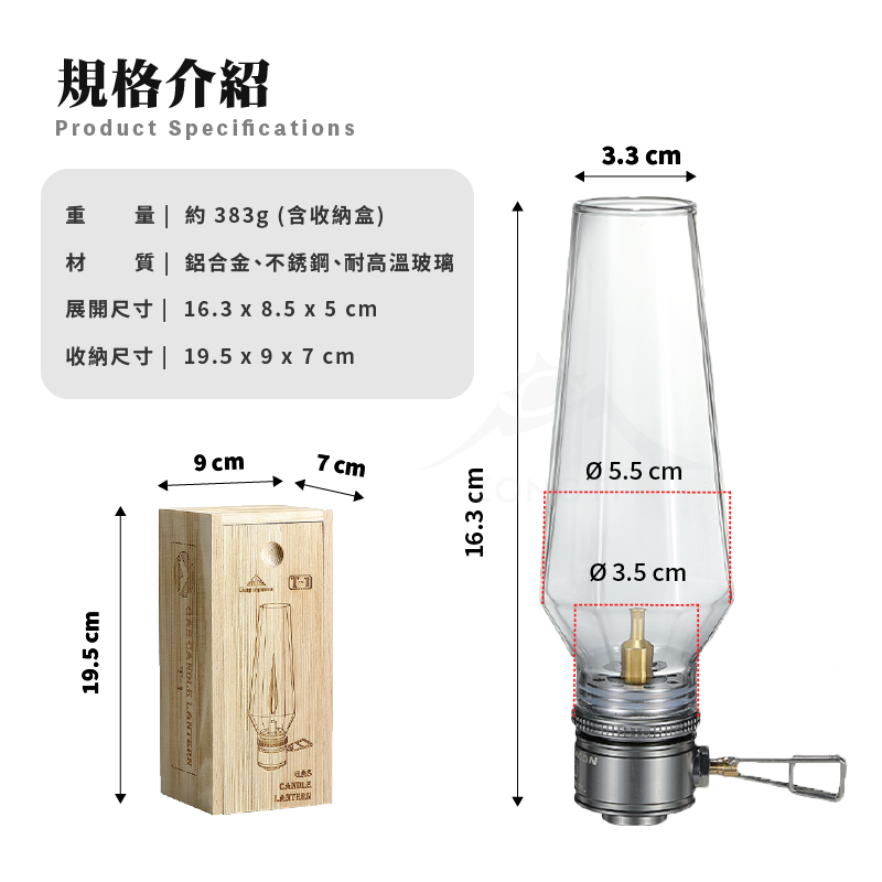 與Coleman 盧梅爾瓦斯燈很像,但燈罩部份改為玻璃鑽石紋上下六邊切面,感覺更美了,