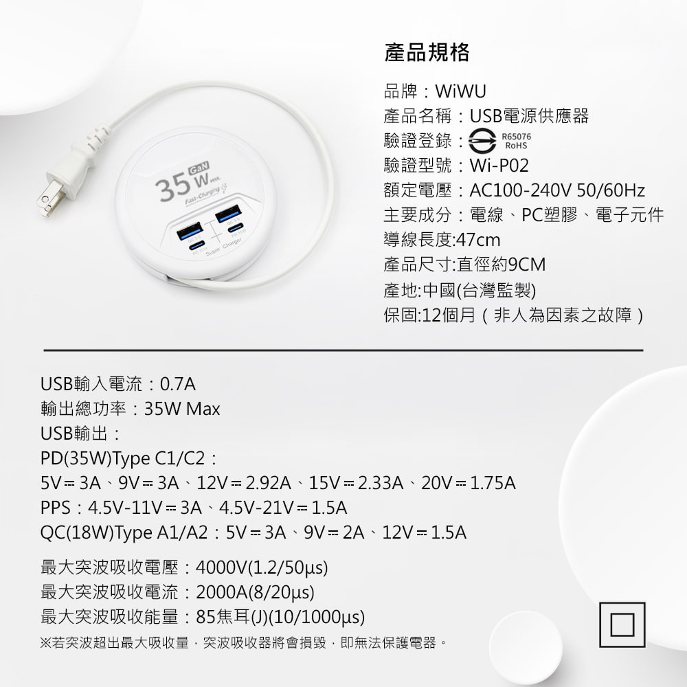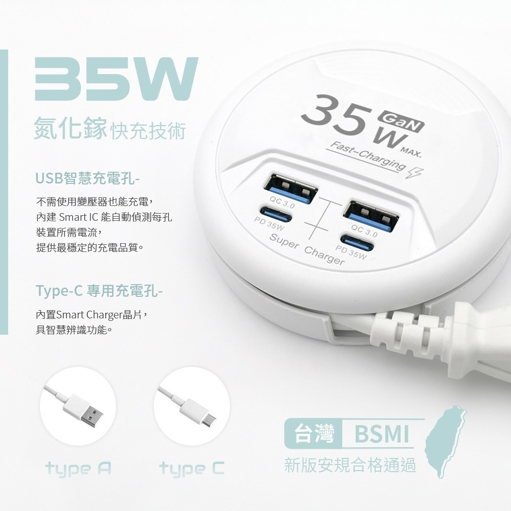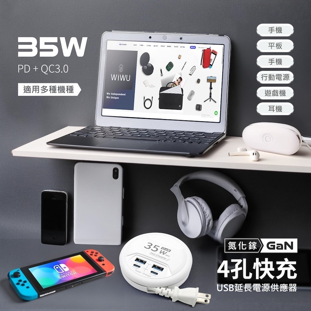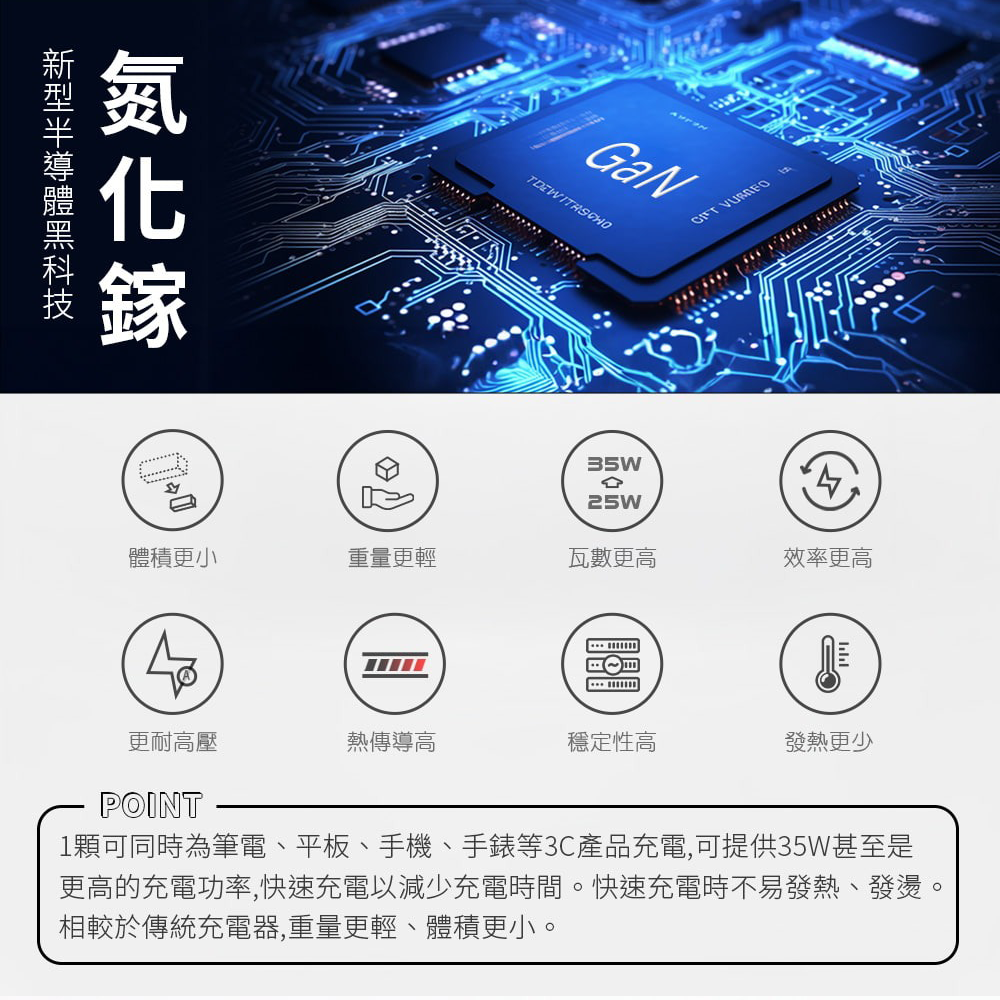✔35W氮化鎵快充技術,效率高、穩定性高