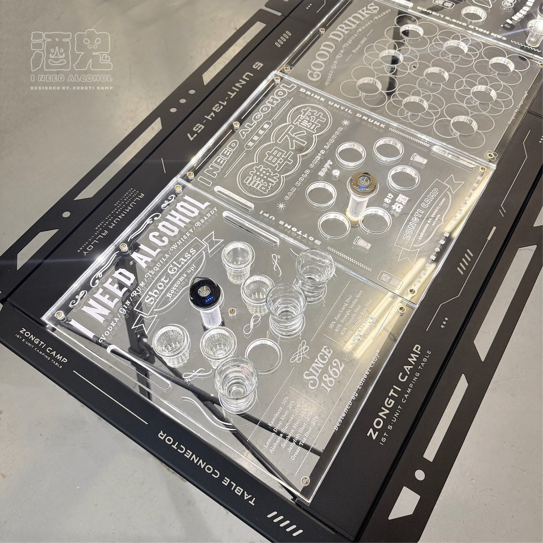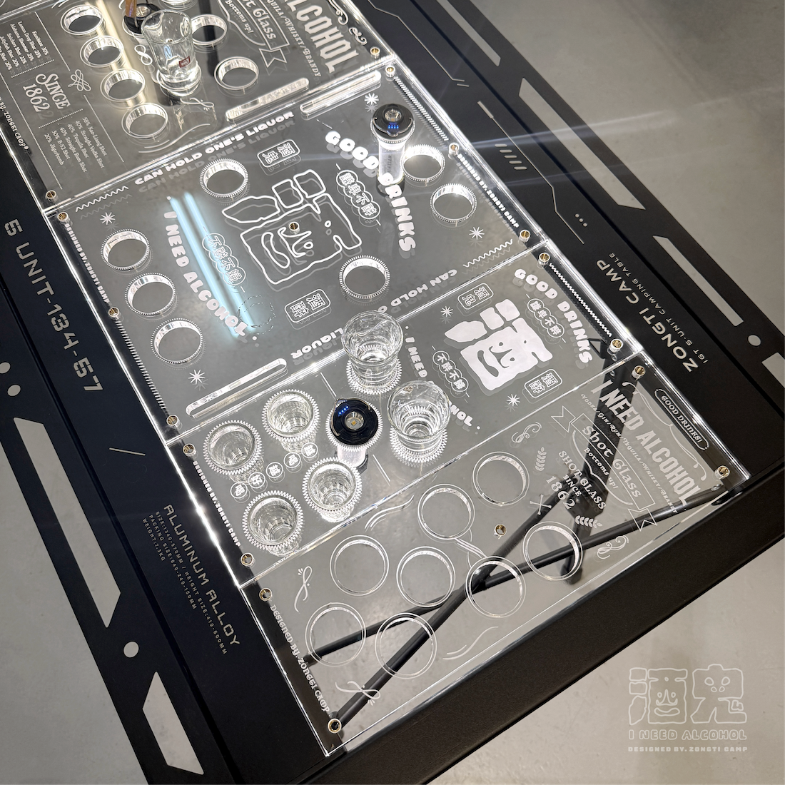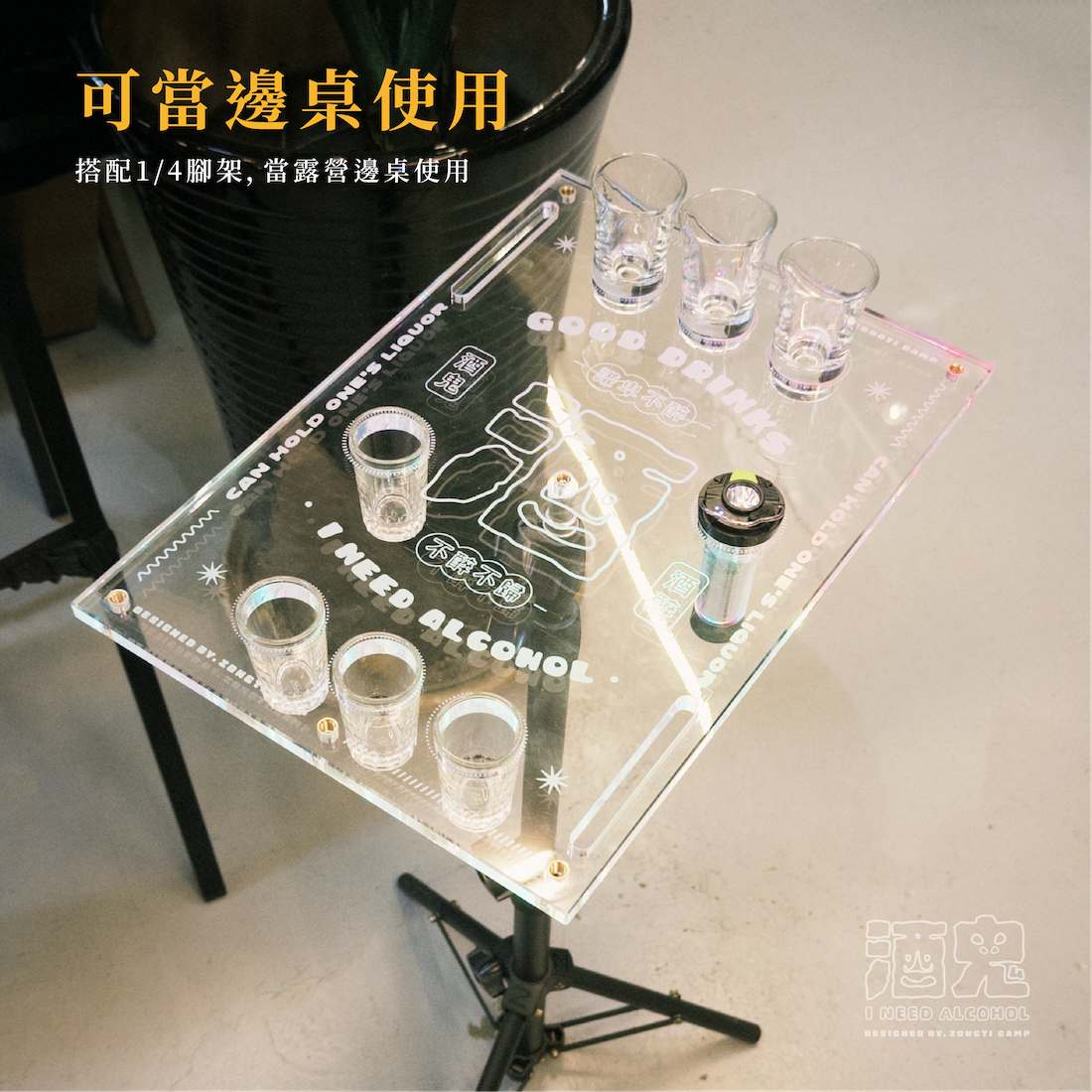 ✔可放shot杯的透明桌板