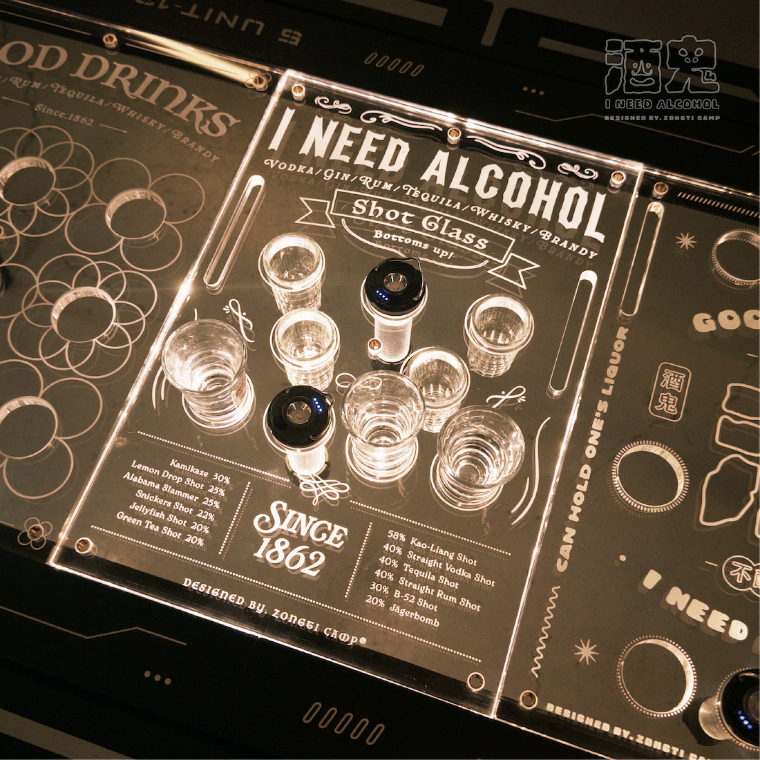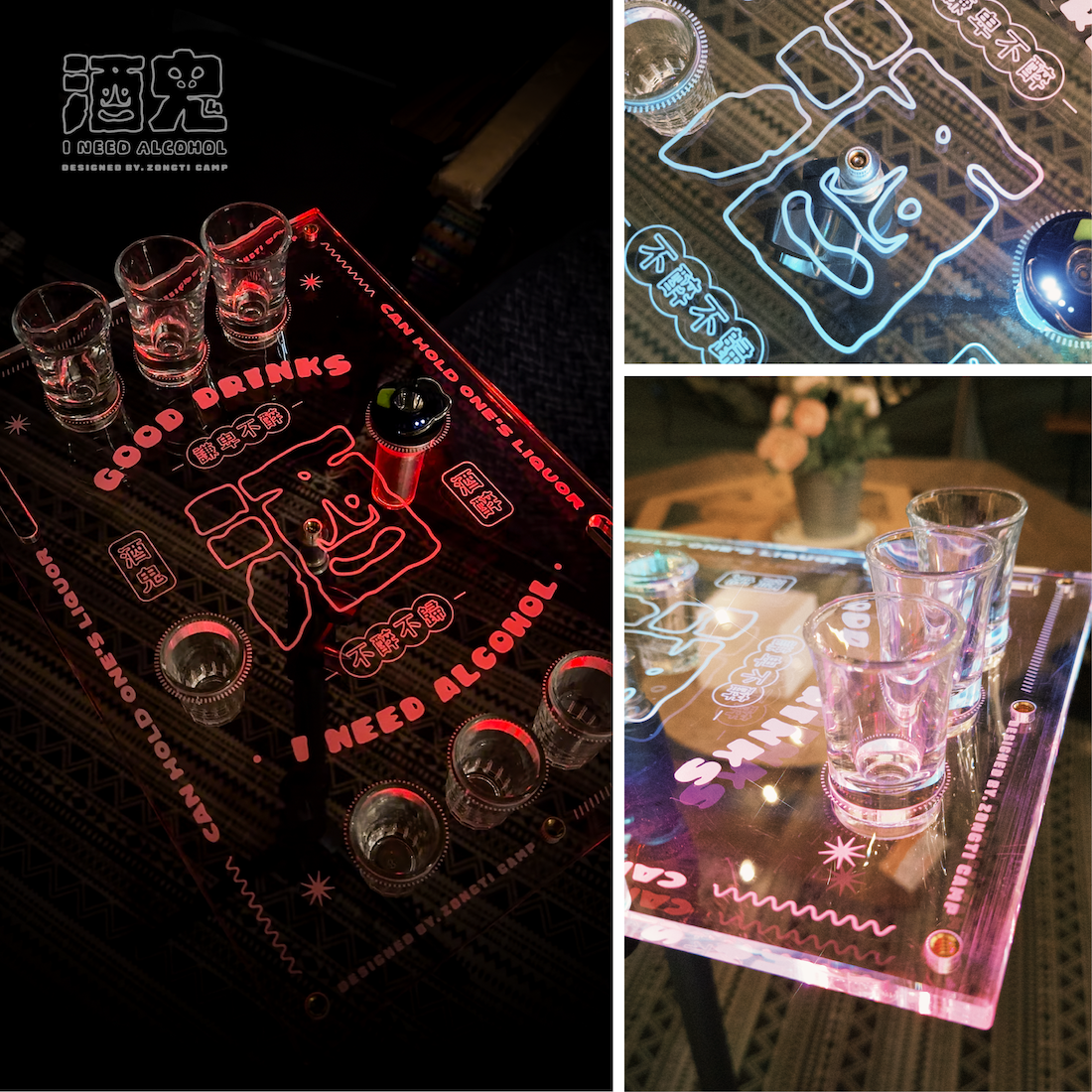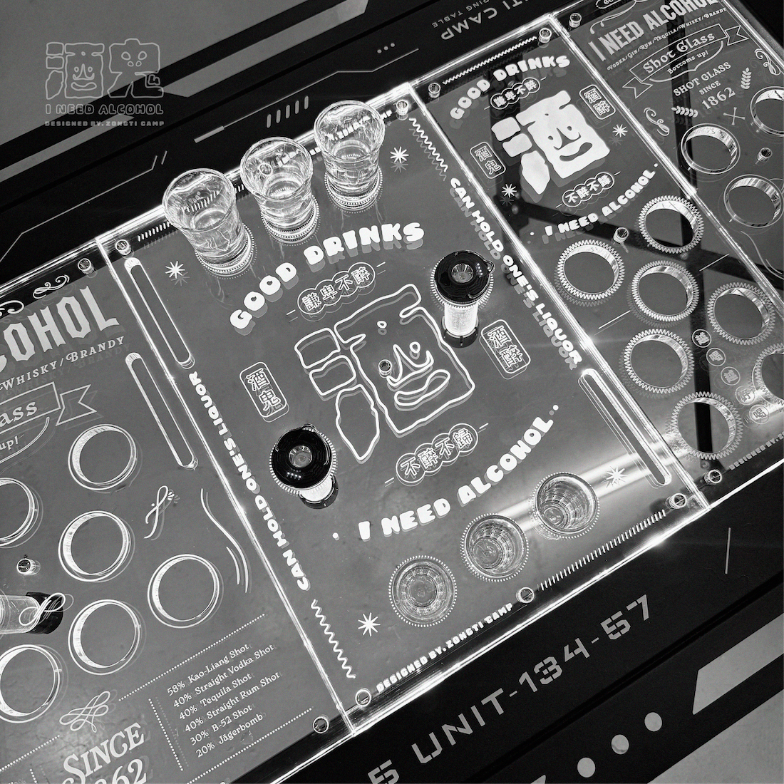 ✔可放shot杯的透明桌板
