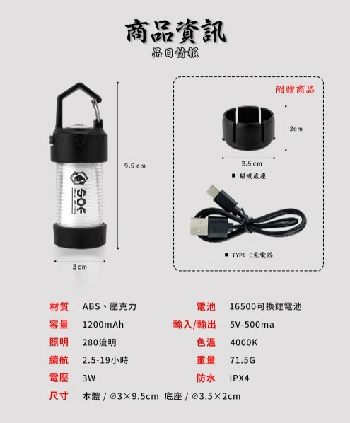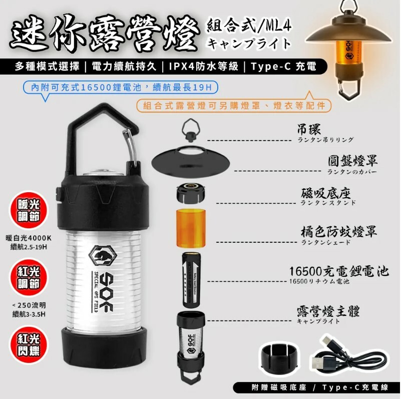SOF 迷你露營燈加購 圓盤燈罩+掛勾 199元
