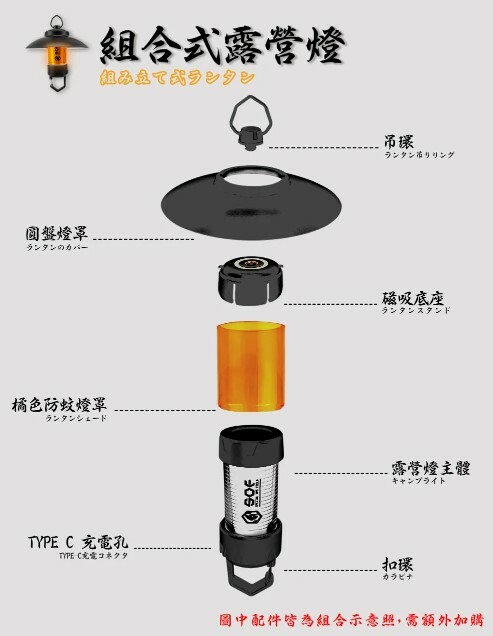 ◉ 組合式露營燈 可另購燈衣燈罩等 多種玩法