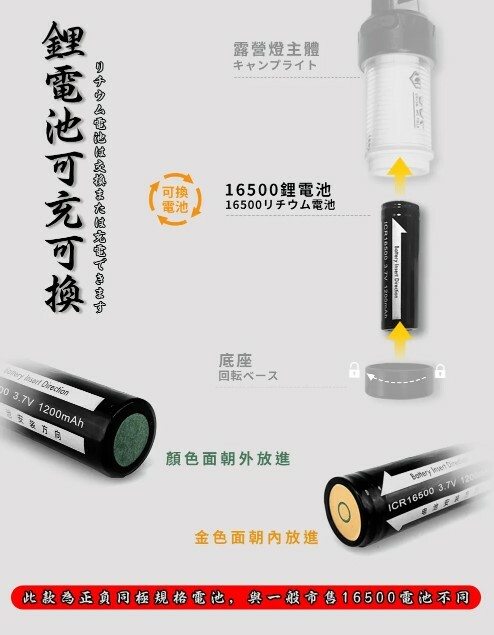 ◉ 16500鋰電池還可更換(專用正負同極16500電池,一般16500不可用)
