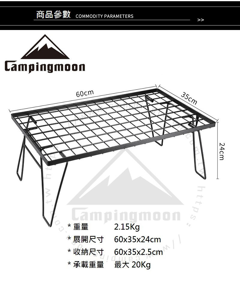 【Campingmoon柯曼】可堆疊鐵製折疊單網桌(無袋) T-230 CA11