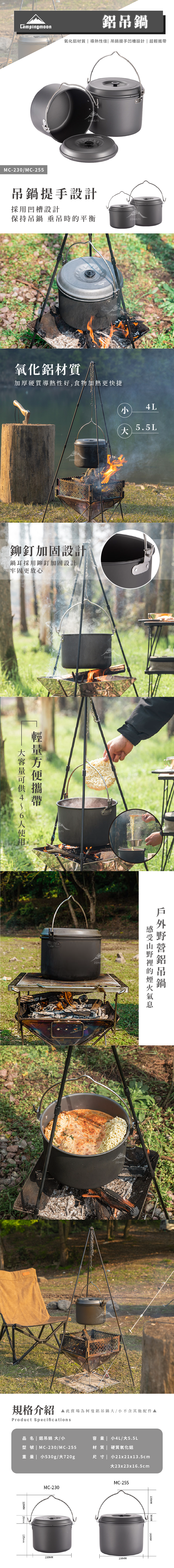 【Campingmoon柯曼】鋁吊鍋 MC-255 MC-230 CA24