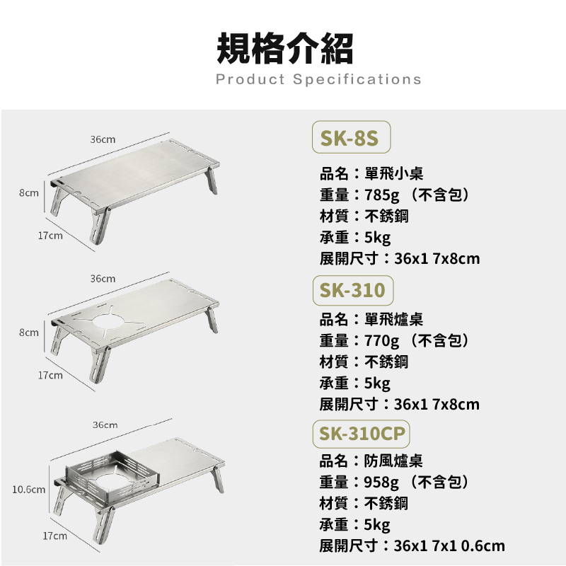 campingmoon單飛防風不鏽鋼架 SK-310CP